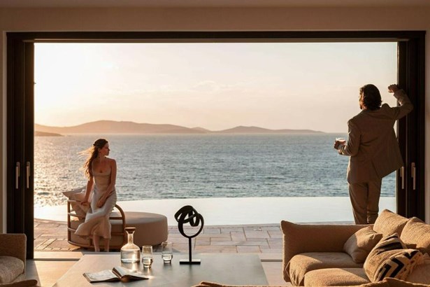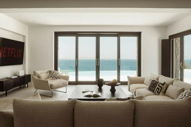 This unique property combines style, size and comfort with unparalleled views, which are unarguably the best in Mykonos. It is conveniently located just few minutes drive from Mykonos Town, Ornos Marina and beach, making it a very rare and exclusive Island retreat.