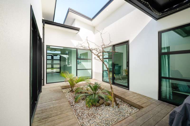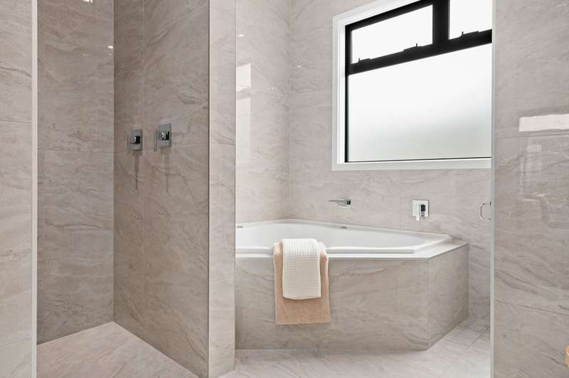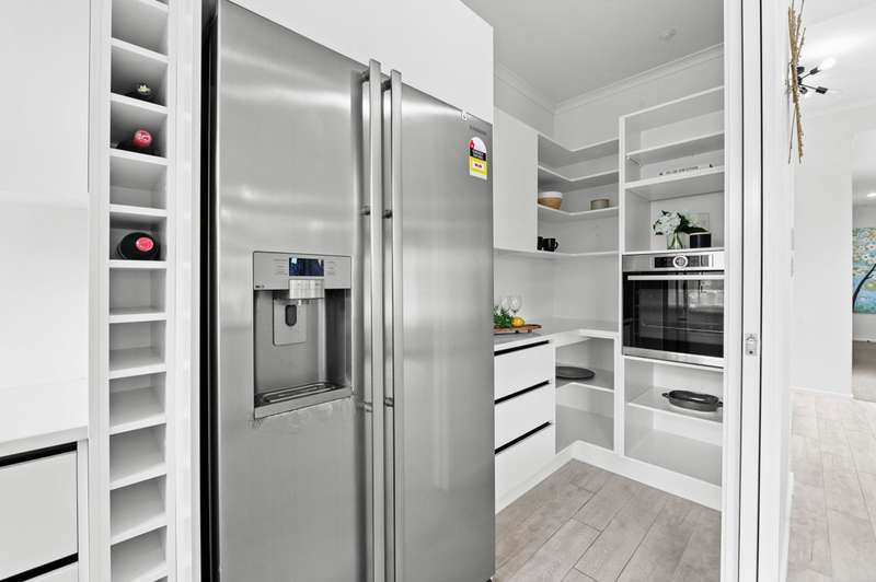 Offering five generous bedrooms, this property is perfectly designed for modern family living. At its heart sits the deluxe kitchen - complete with quality appliances, stone benchtops, a walk-in scullery, and breakfast bar - seamlessly flowing into the open-plan family and dining area. Floor-to-ceiling glass doors open out to a spacious central deck with a louvre system, making entertaining easy in either sunshine or shade.