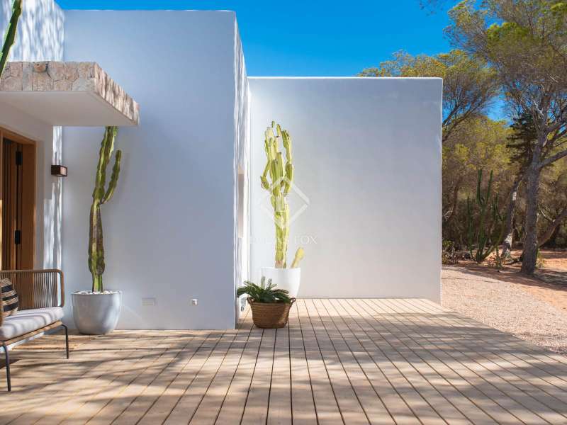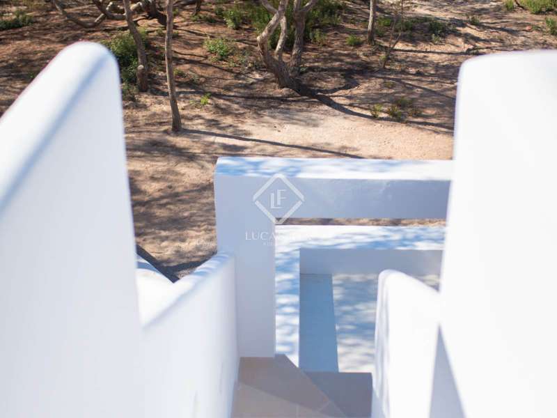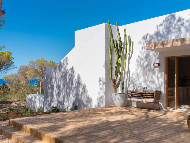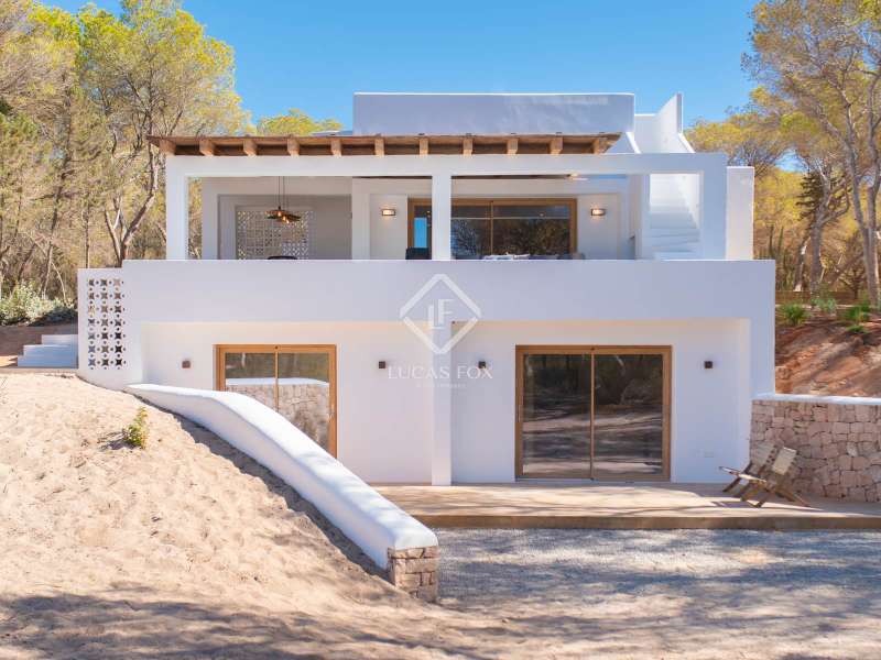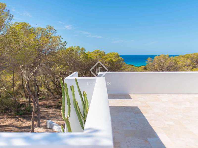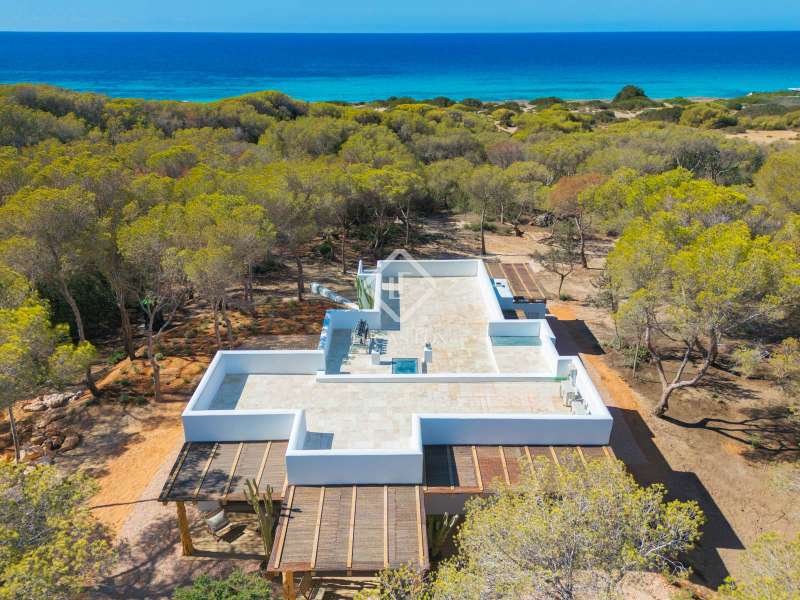 Discover this exclusive, secluded villa located in the serene Migjorn area of Formentera. Just 190 metres from the beach, the property blends natural beauty, privacy, and island charm. Accessible via a private path through untouched landscape, it offers the unique experience of a tranquil retreat only minutes from the shoreline. The villa is designed for comfort and elegance, featuring a main house with three large bedrooms (expandable to four), four bathrooms, and direct outdoor access from each room. An independent guest apartment with two bedrooms, a bathroom, kitchen, and living area adds further flexibility for visitors or staff. A rooftop solarium and multiple outdoor relaxation zones offer breathtaking panoramic views and unmatched tranquility. With ultimate seclusion, no nearby neighbours, and a tourist licence, this is a rare opportunity to own a slice of paradise. Please contact us for further information.