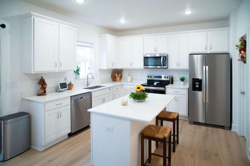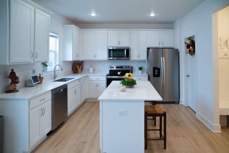 This beautiful two-story home offering 2,163 sq ft of finished living space with 4 bedrooms and 2.5 baths. The open-concept main level features a spacious kitchen with painted cabinets, quartz countertops, large island, pantry, and hardwood floors. A cozy great room with fireplace sits just off the dining area, while a bonus front room provides the perfect space for an office or playroom. Additional main-floor highlights include 9' ceilings, a mudroom