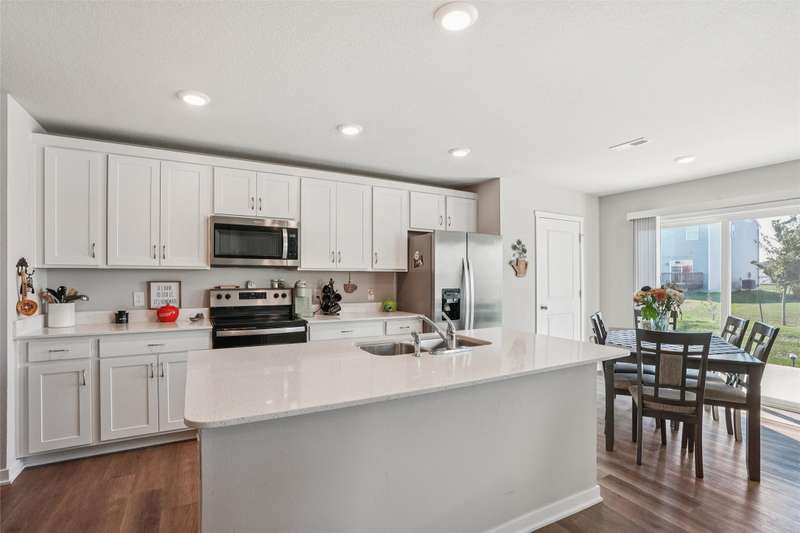 This two-story townhome boasts 3 spacious Bedrooms, 2.5 Bathrooms, and a 2-Car Garage in a spacious open floorplan. As you enter the home youll be greeted with a beautiful living-room featuring a cozy fireplace open to the kitchen and dining space. The gourmet kitchen offers a large island, solid surface countertops and an oversized pantry perfect for entertaining! Added dining space with a slider to your back patio for the perfect space for grilling. On the second level, youll find the primary bedroom with an ensuite bathroom featuring a dual vanity sink as well as a spacious walk-in closet. Two additional spacious bedrooms, a full bathroom and laundry room! If you are ready for ease of living put this on your list to see!