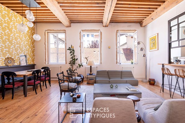 Hidden from view, in the very heart of Croix-Rousse, this rare property offers 148 sqm (125 sqm Carrez law) and feels like a townhouse spread over three levels. Nestled in a quiet cul-de-sac, it enjoys a sought-after location just steps from shops, schools, and public transport.