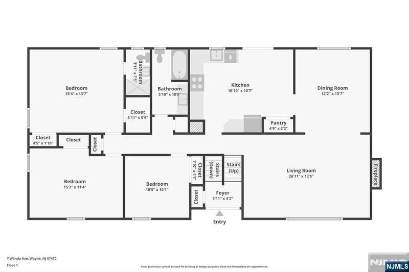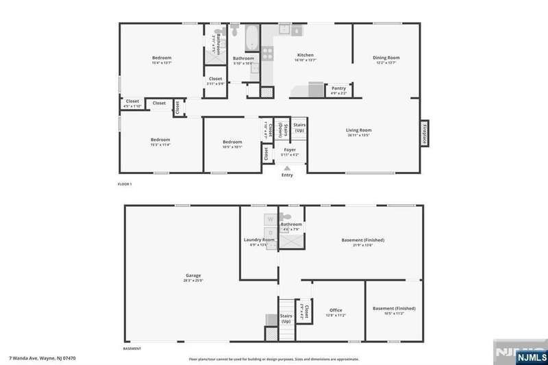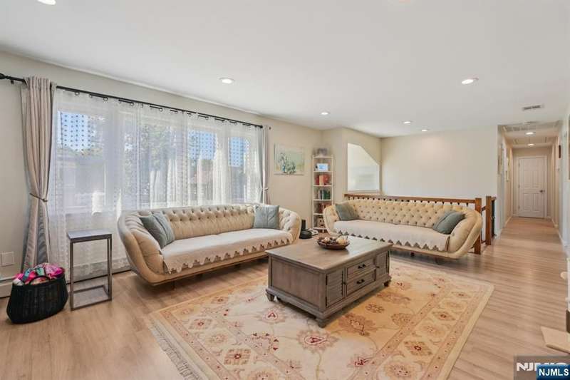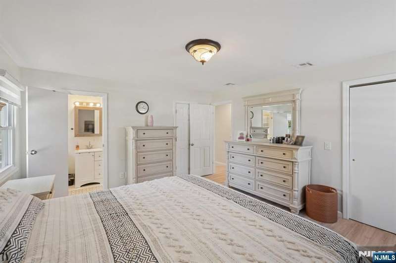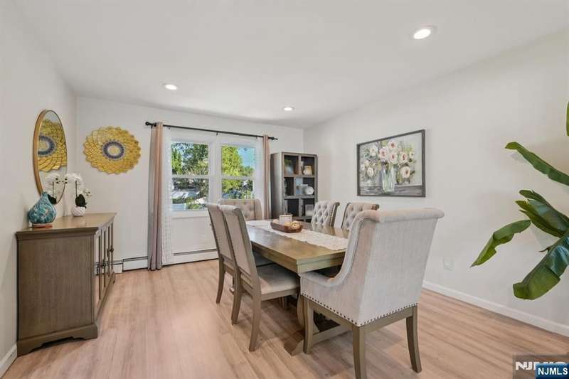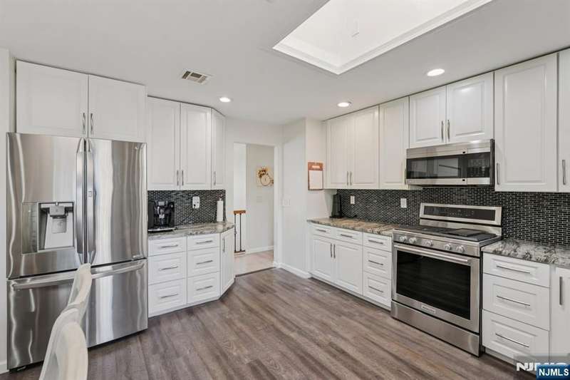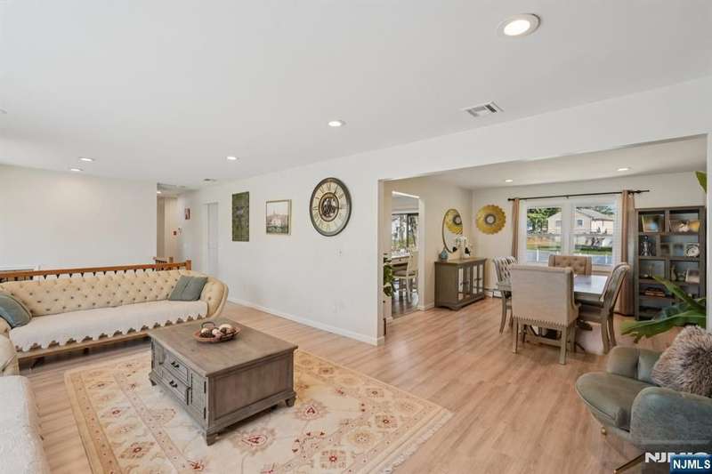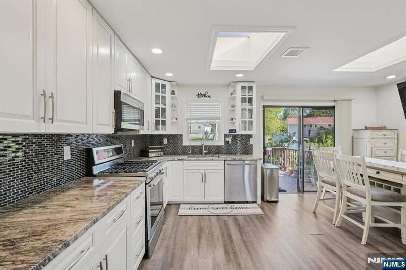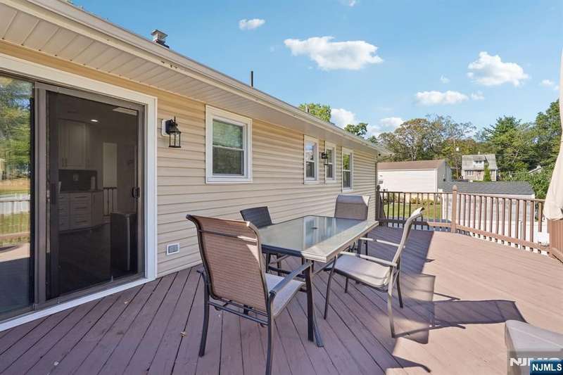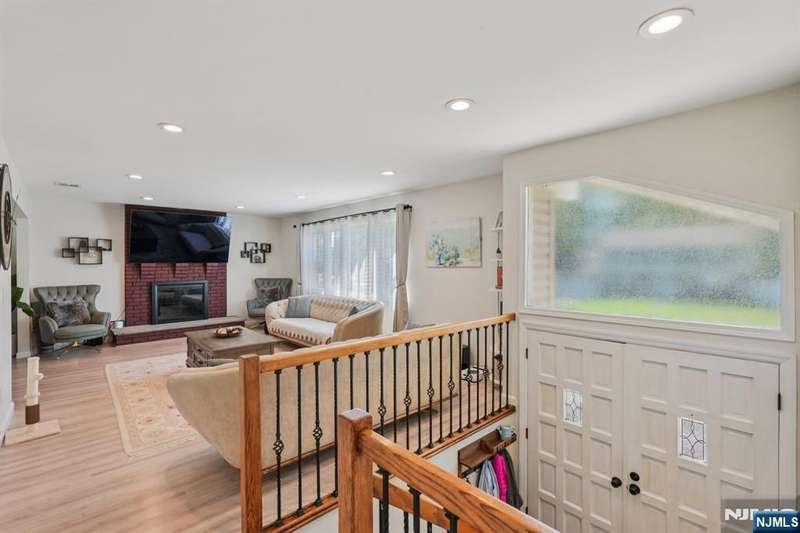 Welcome home to this well-maintained Bi-Level nestled on a large, private lot in the heart of Wayne. Step into the bright and welcoming entry foyer that leads upstairs to the main living area. The sunlit living room offers a large window and cozy fireplace, creating a warm atmosphere for relaxation and conversation. A wide cased opening leads into the elegant dining room, a cheerful setting for both intimate dinners and lively gatherings. The dining room flows seamlessly into the tastefully updated eat-in kitchen, a chef's delight with custom cabinetry, marble countertops, stylish backsplash, stainless steel appliances, pantry, skylights and separate dining area. Sliding glass doors open to a spacious rear deck, perfect for al fresco dining and outdoor entertaining. Down the hall, the primary bedroom features a walk in closet, bonus closet and en suite, while 2 additional bedrooms and full bathroom complete the level. The ground floor offers versatile living with a comfortable family room, an additional bedroom, den laundry room, full bathroom, and garage entrance. From the family room, step outside to the patio overlooking the fully fenced backyard an ideal space for grilling, recreation, and creating lasting memories. Additional highlights include a 1-car attached garage and spacious parking with driveway and circular drive. Conveniently located near NYC transportation, shopping, and dining, this home perfectly blends comfort, style, and convenience for today's lifestyle.