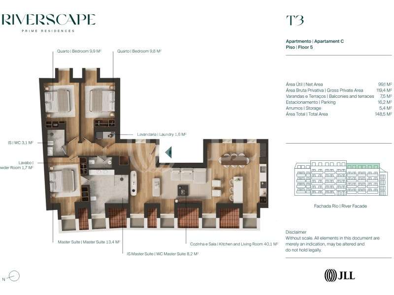 Apartamento T3 novo, com 119 m2 de área bruta privativa, varanda e estacionamento, no Riverscape, no Cais do Ginjal, em Almada. Os apartamentos dispõem de cozinhas modernas, design contemporâneo, janelas do chão ao teto e varandas amplas que oferecem vistas para o rio Tejo. A fachada preserva o seu charme clássico enquanto integra elementos modernos que dão vida ao carácter histórico. Este novo projecto dispõe de jardim, piscina, ginásio totalmente equipado, áreas comuns e espaços exteriores e interiores impressionantes, perfeitos para qualquer ocasião familiar ou reunião de trabalho. Localizado numa zona tranquila que permite desfrutar de belos pores do sol e do charme da envolvência, estando simultaneamente perto da capital. O acesso a Lisboa é rápido: 8 minutos de barco, 20 minutos de automóvel, e o Aeroporto Internacional encontra-se a apenas 25 minutos. Categoria Energética: B #ref:90254