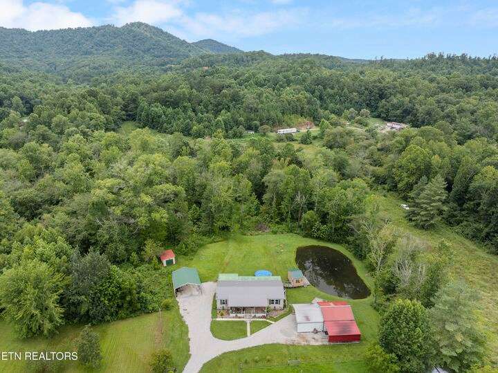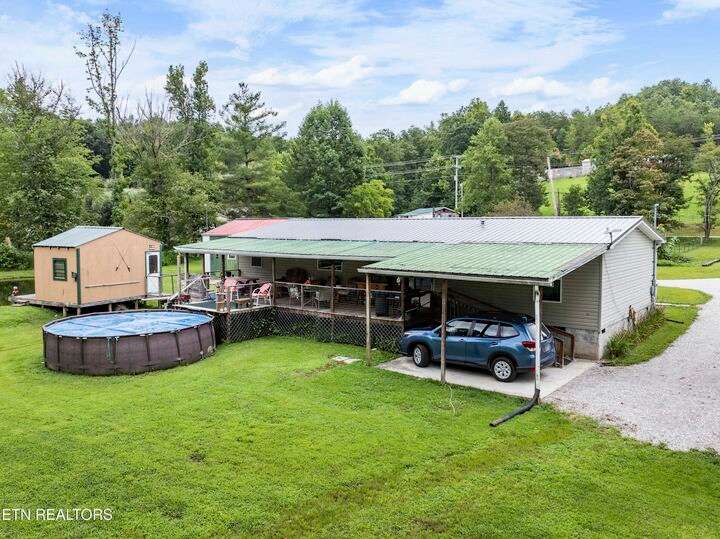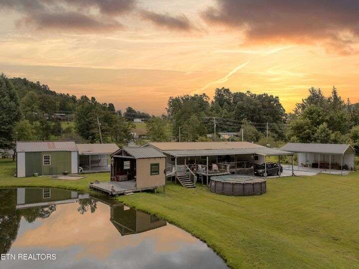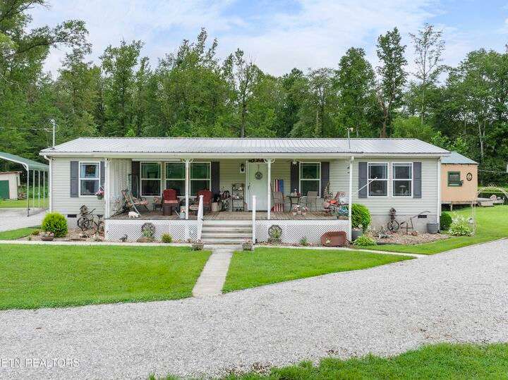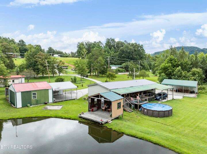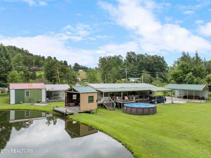Have you ever dreamed of living in the mountains with your very own pond? This well-maintained 2017 manufactured home sits on over 3 acres and offers the ultimate East Tennessee lifestyle! Just minutes from ATV trails, you can ride straight from your property and enjoy endless outdoor adventures. Inside, the home is clean, bright, and well maintained, featuring a split floor plan with the primary ensuite tucked away on its own end for added privacy. The primary suite includes a large walk-in closet and a spacious bath. Additional features include an above-ground swimming pool, RV parking with electric hookup, a large garage, multiple carports, and several storage buildings. Relax on the large covered front porch or the extra-large covered back porch, which leads to a deck that extends to your own partially covered fishing shed overlooking a fully stocked pond with catfish, bluegill, and bass. With plenty of space for outdoor activities, this property would make a fantastic short-term rental, weekend getaway, or full-time home. Come see what the East Tennessee mountains have to offer—call today for your private tour!