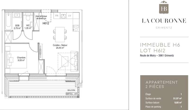 An Alpine Haven in an Exceptional Residence Located on the first floor of the prestigious La Couronne residence, this elegant 1-bedroom apartment blends contemporary comfort with authentic mountain charm. With a perfectly designed 51 m² layout, it offers a bright living space with an open-plan kitchen, a cozy bedroom, and a modern bathroom. Designed with comfort and well-being in mind, Apartment 612 provides direct access to the residence’s full range of hotel-style amenities: indoor spa, swimming pool, wellness area, ski-room, and a trusted rental management partner. Grimentz – Alpine Authenticity at Its Finest A true postcard village, Grimentz has been ranked among the most beautiful ski villages in Europe by CNN and National Geographic. It captivates with its timeless charm: sun-darkened larch chalets, cobbled streets, living traditions, and a warm, welcoming atmosphere. A World-Class Ski Destination • 100 km of ski slopes connected to Zinal • Freeride skiing, ski touring, heliskiing • Snowparks, family-friendly slopes, ski schools
