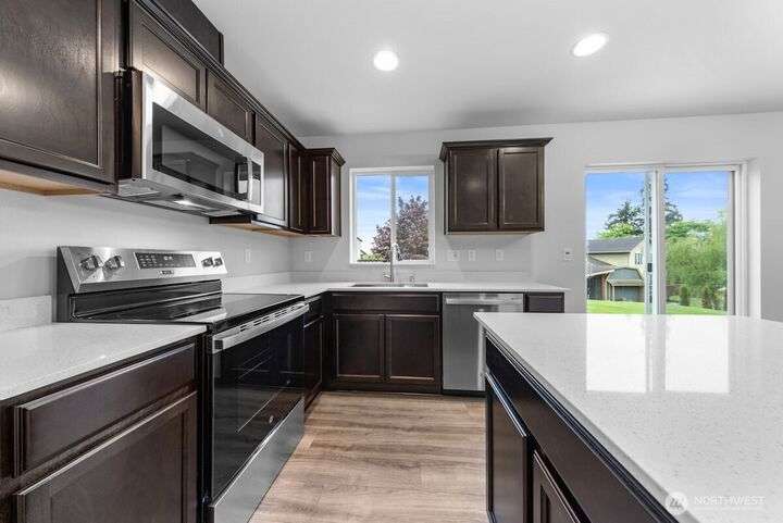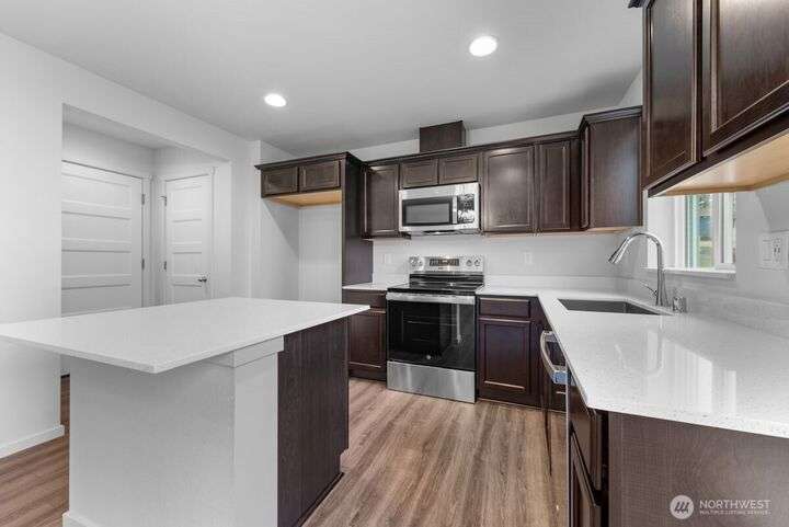 THE BENNETT Design A Plan lot 6 at the Serenity Trails community. At 1419 sqft this 3-bedroom,2.25-bathroom with a loft 2-story home offers elegant quartz countertops in the kitchen, efficient stainless steel appliances, gorgeous laminate hardwood flooring and white painted millwork. The Serenity Trails community ideally situated between the thriving cities of Marysville and Lake Stevens, this new neighborhood offers a commuter-friendly and inviting place with restaurants, schools and shopping within minutes. Thoughtfully designed floorplans and timeless finishes offer comfort and style. Enjoy the benefits of NEW! New home warranty, energy efficient, low maintenance, updated safety & modern lifestyle design elements.
