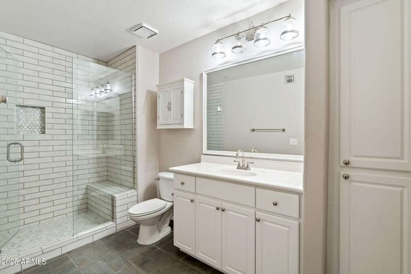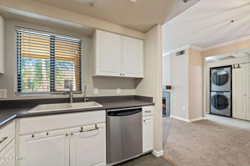 Fantastic Scottsdale Location! This recently updated 1-bedroom, 1-bath condo is ideally situated in Central Scottsdale and offers end-unit privacy with a modern feel. Inside, you'll find stainless steel appliances, a 2022 HVAC system, fresh white cabinetry, a full-size washer and dryer, and an upgraded bathroom with a glass-enclosed walk-in shower with tile surround. Added features include window treatments, LED lighting with dimmers, and a reverse osmosis system. Just minutes from Old Town, Gainey Ranch, and the 101 Freeway, the home provides convenient access to shopping, dining, and entertainment. Outdoor recreation is right outside your door with the Greenbelt, golf, & more. The community also offers a heated pool and spa, tennis courts, and a fitness center. See documents for updates