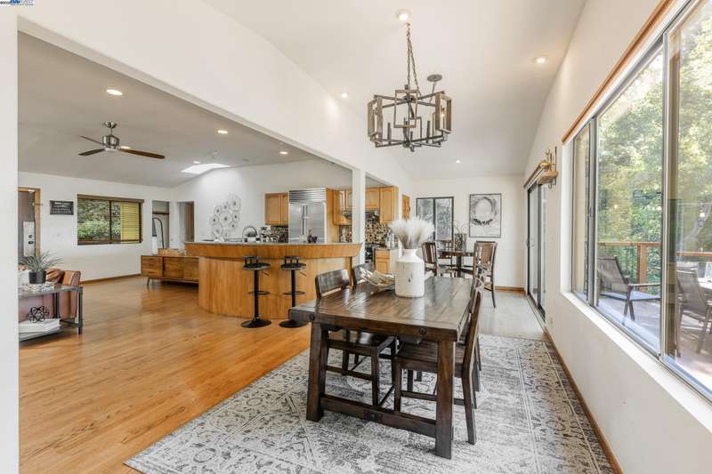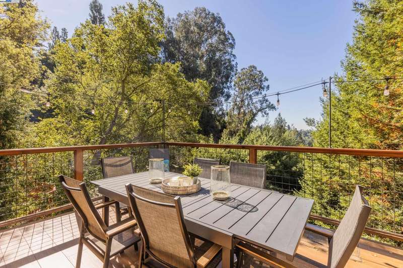 Beautiful Montclair home with amazing nature views! Home features 3 bedrooms, 3 bathrooms with living space with an open concept & Abundance of natural light. A one of a kind kitchen, with modern circular counter top/bar, has gas stove and encased refrigerator. This home is truly a great entertainers dream home. The expansive decks on every floor allow you to live in nature with Fruit trees, garden boxes and a lawn outside. Great location too, near the Montclair Village, Rockridge, BART, fwy access and public transportation! Come take a look soon!