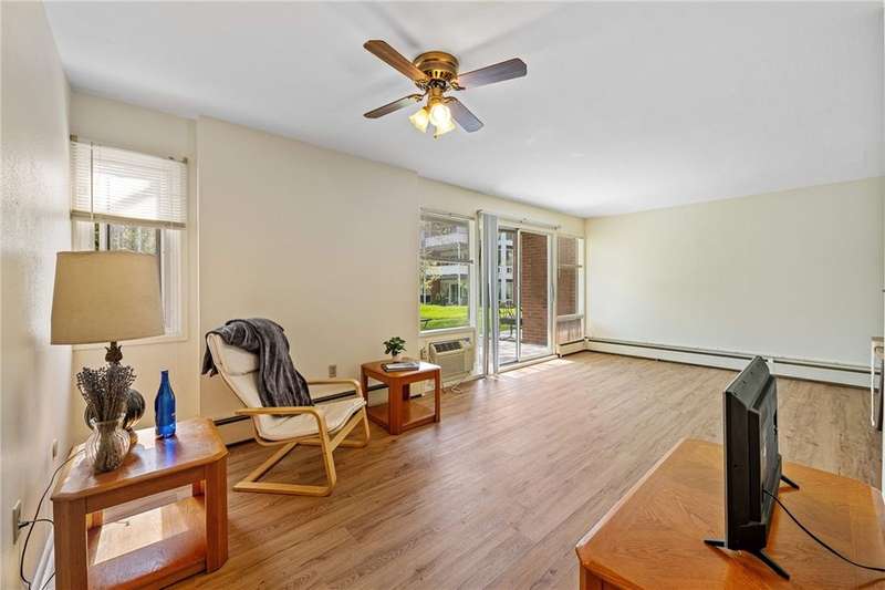 Great opportunity for a one bedroom patio condo in the popular Sevanna Park in Northeast Ithaca, just a few steps from the Triphammer mall. Bright & spacious 1st floor condo with sliding glass doors to patio and quiet courtyard. Wonderful Southeastern exposure. Newer LVP flooring, kitchen needs updates. Close to shopping, TCAT bus and all services. Accessible laundry room next to condo unit and private storage area. Well managed community and HOA fee $389/mo covers water, sewer, trash collection, lawn mowing, snow plowing, exterior maintenance, furnace, and water heater maintenance and all exterior maintenance. Easy living at its best. Purchase offer is subject to Sevanna Park Association declarations, bylaws, rules & regulations. Open House Saturday May 17, 10-11:30
