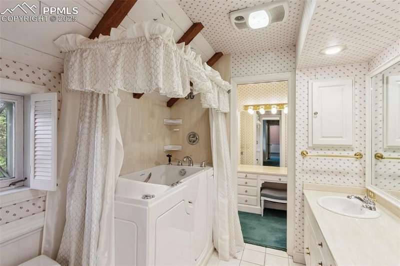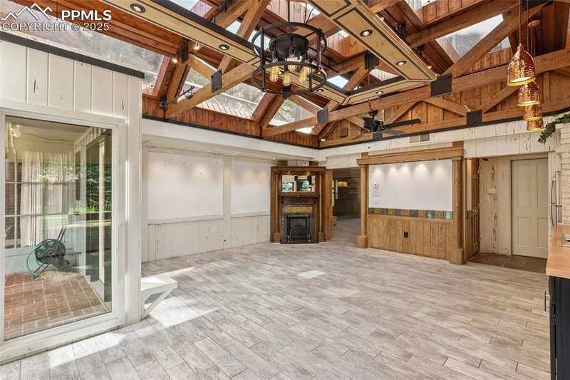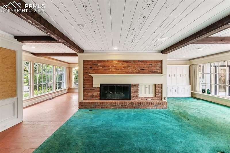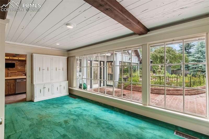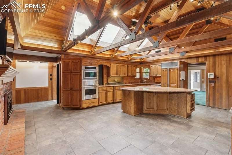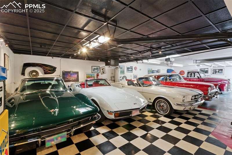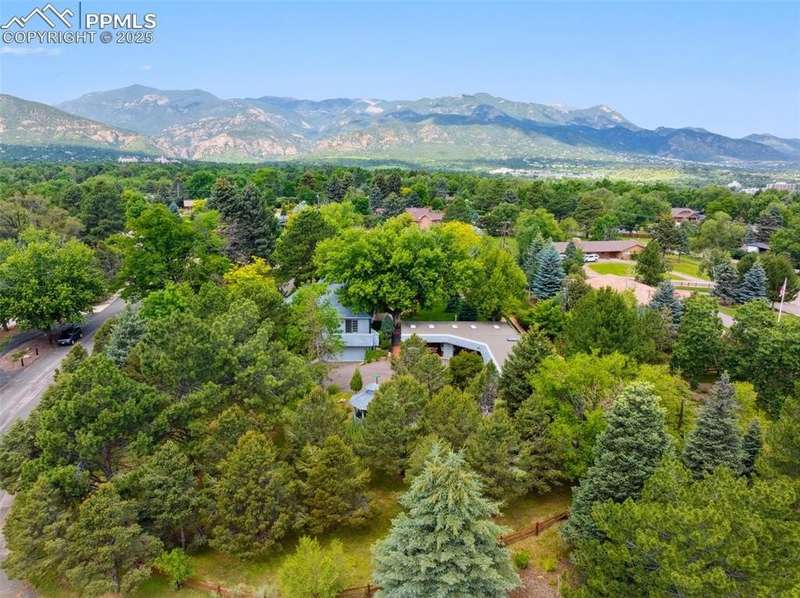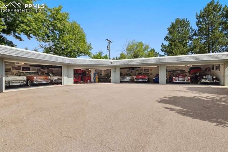 Welcome to this Broadmoor estate, nestled on 1.25 beautifully landscaped acres in one of Colorado Springs’ most prestigious neighborhoods. Boasting an impressive pedigree with only two owners, as the home was built in 1958! Tucked within a quiet neighborhood, the home is accessed via a gated circular driveway, providing both seclusion and standout curb appeal. Car enthusiasts will appreciate the incredible 16-car garage capacity, a true rarity. Designed for effortless entertaining, the home features a stunning panoramic folding door system that seamlessly connects the family room to one of several patios, blurring the lines between indoor and outdoor living. The entertaining kitchenette in the family room makes hosting guests easy, while the patios open to lush, mature landscaping that feels like your own private park. At the heart of the home lies a spacious, light-filled kitchen, featuring granite countertops, a large island with breakfast bar, beamed ceilings, and multiple skylights. A cozy fireplace stove adds character and warmth to this space. The primary suite retreat has its own sitting room, private wet bar, and walk-out to a deck. The 5pc bath offers dual vanities, a walk-in tub, and a separate shower. Two additional bedrooms in this wing share a Jack-and-Jill bathroom. The living and dining rooms each showcase their own fireplace, providing spaces for gathering. An office/study off the kitchen includes extensive built-ins and another fireplace stove, creating a productive workspace. A separate wing features an additional bedroom, a three-quarter bath, and access to an upstairs playroom, perfect for children, hobbies, or additional guests. With six fireplaces, and exceptional outdoor living spaces, this one-of-a-kind estate is a Broadmoor legacy, offering a truly coveted location.