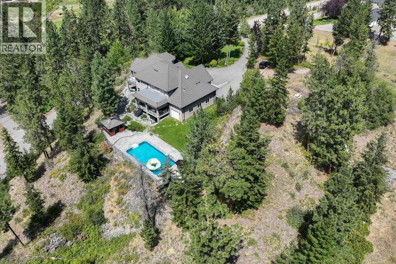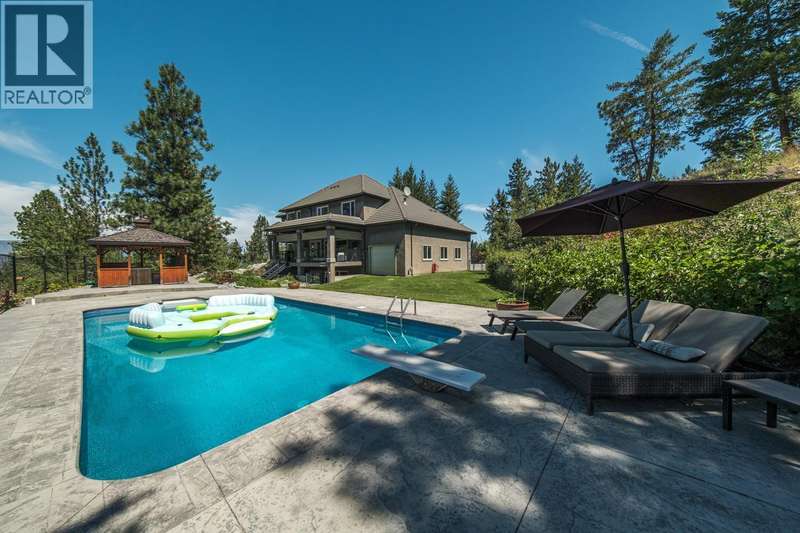 Welcome to this private estate on nearly 5 flat acres in the heart of SE Kelowna. This meticulously crafted 4/5 bed, 4 bath residence offers over 5,100sqft of classic design and updates. A sweeping tree-lined driveway leads to a timeless estate featuring a 1283sqft 3-car garage plus a 40-ft deep tandem bay, perfect for an RV, boat, or workshop. The home blends classic and modern, with a grand curved staircase, formal living and dining rooms, & a chef’s kitchen complete with high-end appliances. Doors open to the expansive backyard oasis with a heated 18x36 saltwater pool, patio space, and a covered gazebo complete with a hot tub—perfect for entertaining or unwinding in total privacy. Upstairs, the lake view primary suite features a walk-in closet, and a serene outlook over the surrounding landscape. Two additional bedrooms provide ample space for family and den or 5th bedroom plus an additional room. The walkout lower level includes a media room, a self-contained suite with separate laundry & kitchen, which could also be for guests, or poolside entertaining. Even provision in plans for elevator. Approx 3 acres are cleared and level—ideal for horses, outbuildings, or hobby farming. Zoning and size of land allows for engaging in agriculture, forestry, animal clinics, kennels and operating stables. Easy access to Crown Land and the nearby Crawford Trails/Myra-Bellevue Provincial Park offers excellent opportunities for hiking, biking, & horseback riding right from your doorstep (id:7434)