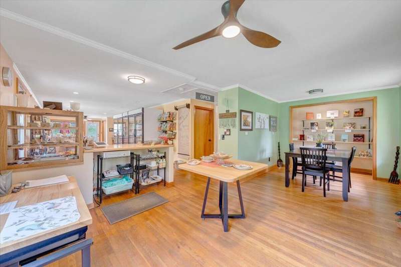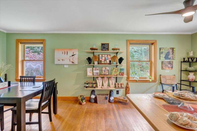 Listing price includes seller remodeling the property back into a 3BR/2BA home with an additional dwelling unit in the basement featuring a kitchenette, full bath, and private entrance. Currently used as a successful shop and cafe, the home has received extensive updates: new roof, exterior porch, windows, flooring, and fresh paint inside and out. Enjoy a large side porch, garden space, 2-car detached garage, and storage shed. The spacious lot to the left has already passed perc for a planned well and tiny home. With fast Citizens internet, this property offers modern convenience and flexibility. Whether you're looking for a charming residence with extra income potential or a unique investment, this one stands out. Also offered in current condition as shop/restaurant for $310,000.