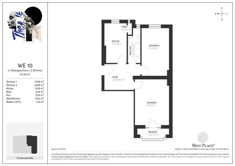 The THEO 16 apartment block was built at the beginning of the 20th century and has retained its classic old building charm ever since. It has been renovated in recent years, retaining its historical character while carefully integrating modern standards. The property offers a variety of flat sizes, from cosy one-bedroom flats to spacious four-bedroom flats, suitable for singles, couples and families alike. The high ceilings and large windows ensure bright and spacious living areas that convey a feeling of width and airiness. The green inner courtyard offers a peaceful oasis in the centre of the city. There are also storage facilities for bicycles. Each flat has a separate cellar room that offers additional storage space. THEO 16 is an excellently maintained old apartment block that impresses with its central location in lively Neukölln and its modern fixtures and fittings. The mixture of historical flair and contemporary living comfort makes this property particularly attractive for people who want to enjoy urban life in Berlin. All flats have no lock-up period.