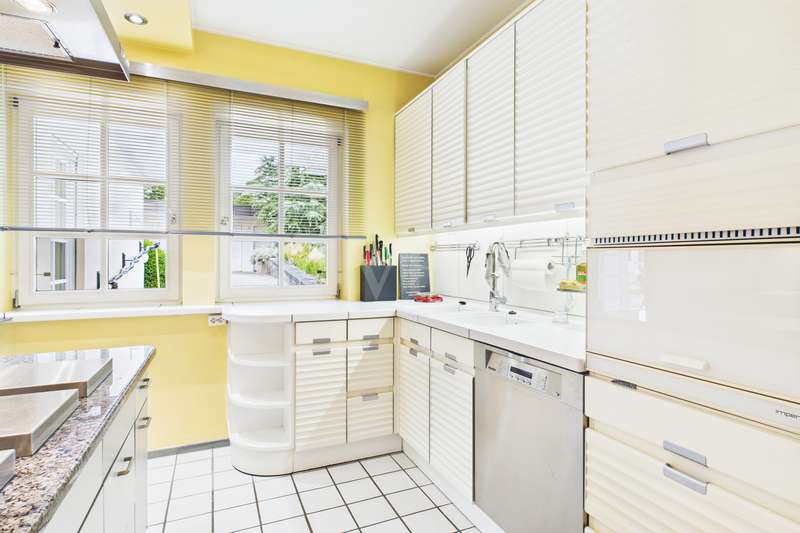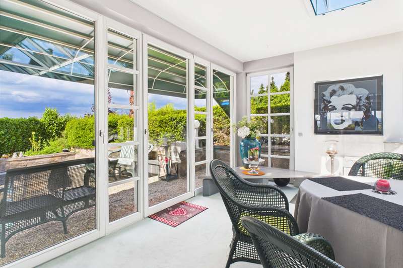 This exceptional villa from 1984 is only accessible via a private driveway and offers a high degree of discretion, space and quality of life. On a generous living area of approx. 500 m², an architecturally sophisticated property unfolds, which impresses with its clear lines, exquisite materials and timeless elegance. Embedded in a park-like plot of over 2,300 m², you will experience privacy at the highest level - with plenty of space for personal development and exclusive living wishes. Even the prestigious entrance conveys a sense of spaciousness and style and opens up access to light-flooded living areas. The open-plan living and dining area impresses with floor-to-ceiling window fronts that offer breathtaking views of the surrounding countryside. The south-west orientation ensures a warm, atmospheric ambience and creates a harmonious interplay between indoor and outdoor space. The room layout is well thought-out and functional at the same time: four spacious rooms are available as bedrooms, studies or guest rooms - each room offers a retreat with maximum comfort and stylish flair. Three high-quality bathrooms impress with their fine materials, harmonious design concept and exclusive fittings. A modern gas condensing boiler system combined with pleasant underfloor heating ensures a comfortable indoor climate and efficient use of energy all year round. Fine marble flooring, selected furnishing details and a consistent lighting concept underline the high-quality character of this property. The property is in an extremely well-kept condition and is ready to move into immediately - without any renovation work. The outdoor areas boast lovingly landscaped gardens, spacious terraces and sheltered seating areas, which open up new perspectives of the impressive 270° panorama at any time of day. In this exclusive villa, you can enjoy maximum peace and quiet in an environment of incomparable quality. The perfect symbiosis of aesthetics, privacy and functionality makes this property a rare opportunity for discerning buyers. Are you interested in finding out more about this promising investment with lots of potential and charm? The von Poll Team Aschaffenburg looks forward to hearing from you!