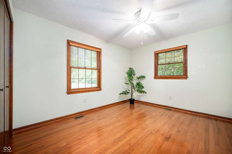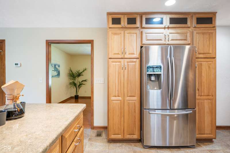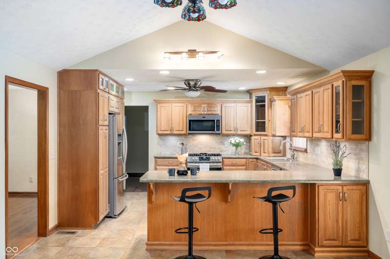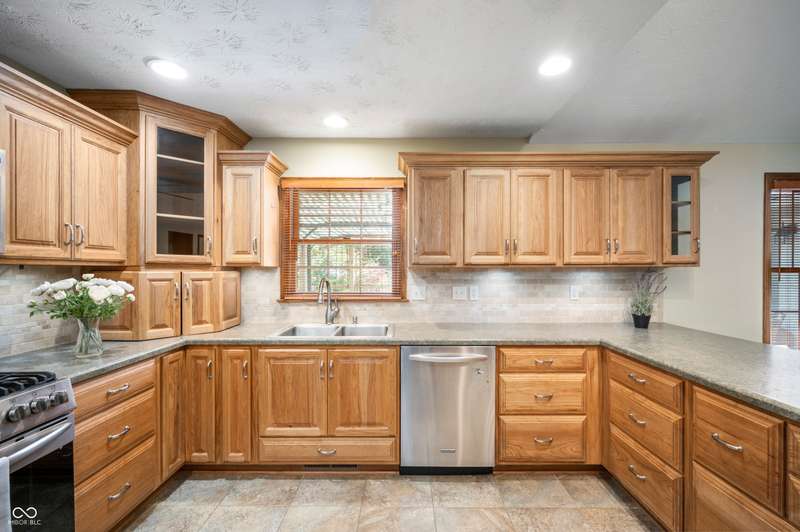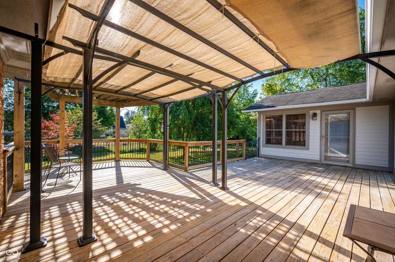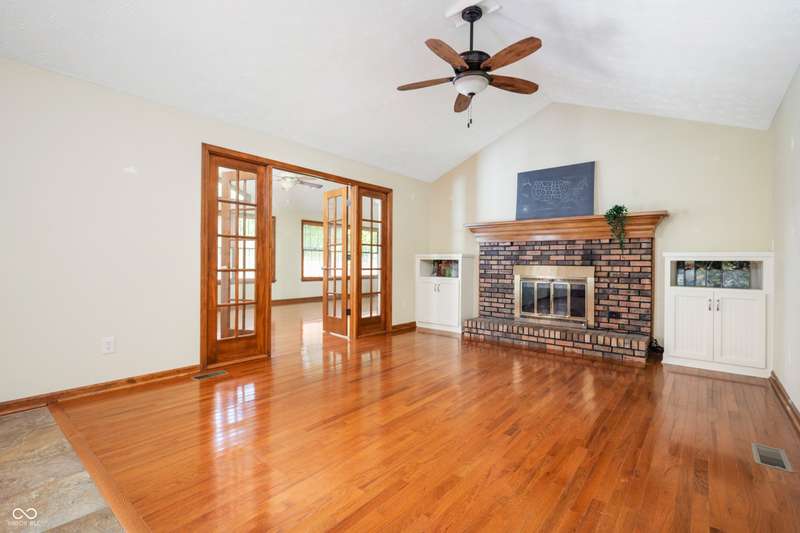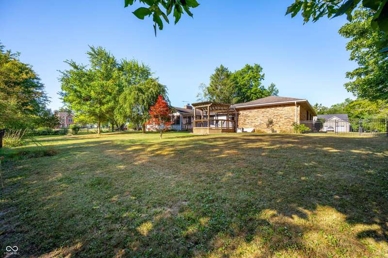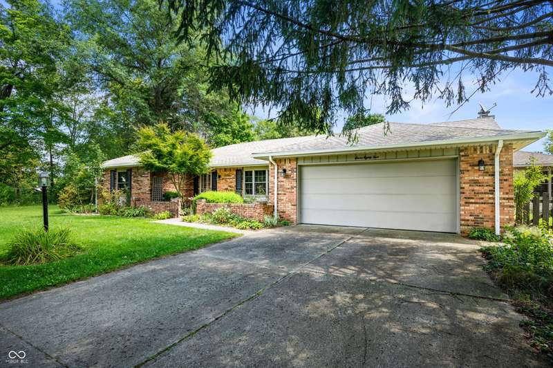 This ranch home rests on a 1.3 acre parcel that feels like a private backyard garden. The landscape shows attention to detail, with mature trees, flower beds, and plenty of open area. The home offers 3 bedroom, 2 full bath, and 2,317 SF of living space. Vaulted ceilings, wood burning fireplace, and custom built-ins all add to the character of the home. The updated kitchen includes stainless appliances, tile backsplash, and breakfast bar for extra seating. French doors lead to a large sunroom that has vaulted ceilings and is lined with windows for plenty of natural light. The bookshelf lined staircase leads down to an 20' x 9' basement that offers an exceptional amount of storage space or storm shelter. The primary suite offers views of the deck and yard, a stand-up shower, jetted tub, and walk in closet. Abundant shelving in the main-level laundry provides plenty of organization options. The spacious deck and fully fenced back yard offers a peaceful place to relax and garden. Home will be sold with an as-is addendum in place. Seller may be willing to consider reasonable repair requests if any repairs are needed.