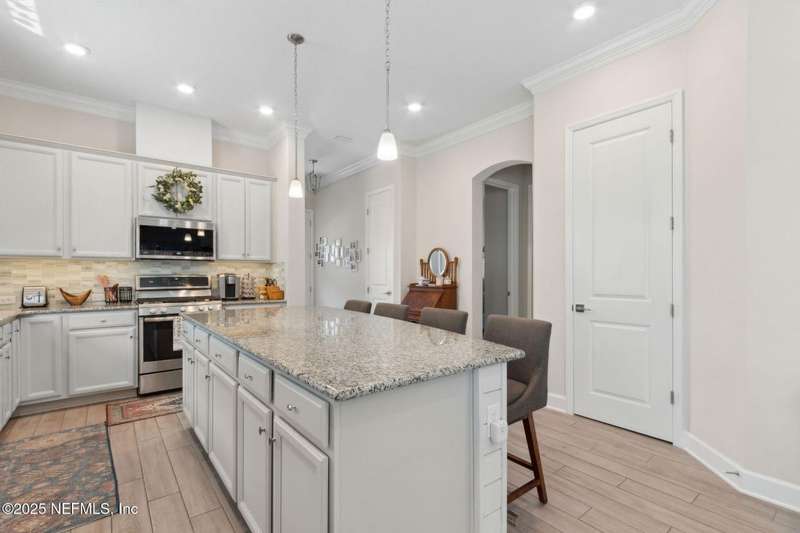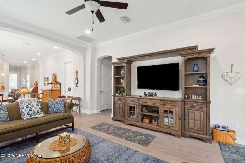 Beautifully maintained home built by David Weekly located in Shearwater with it's abundance of amenities and new Trout Creek School. Enjoy front porch setting while visiting with your neighbors. Backyard is fully fenced and has beautiful landscaping. This home offers 3 bedrooms and an office with French doors. Some of the upgrades include triple sliders leading to screened patio and crown molding in main living areas. French drs to office Kitchen is beautiful with upgraded tile backsplash, large island and stainless steel appliances that stay and a spacious eat in area. Owners suite is large and bath has double vanities and custom decorative wall , oversized walk in shower and walk in closet. Family room overlooks screened patio. Tile throughout most of the home. All TV's stay and seller will leave home furnished with acceptable offer. This home has the perfect floorplan and is centrally located within Shearwater. Low fees.