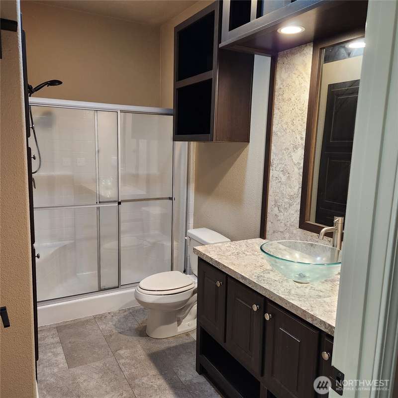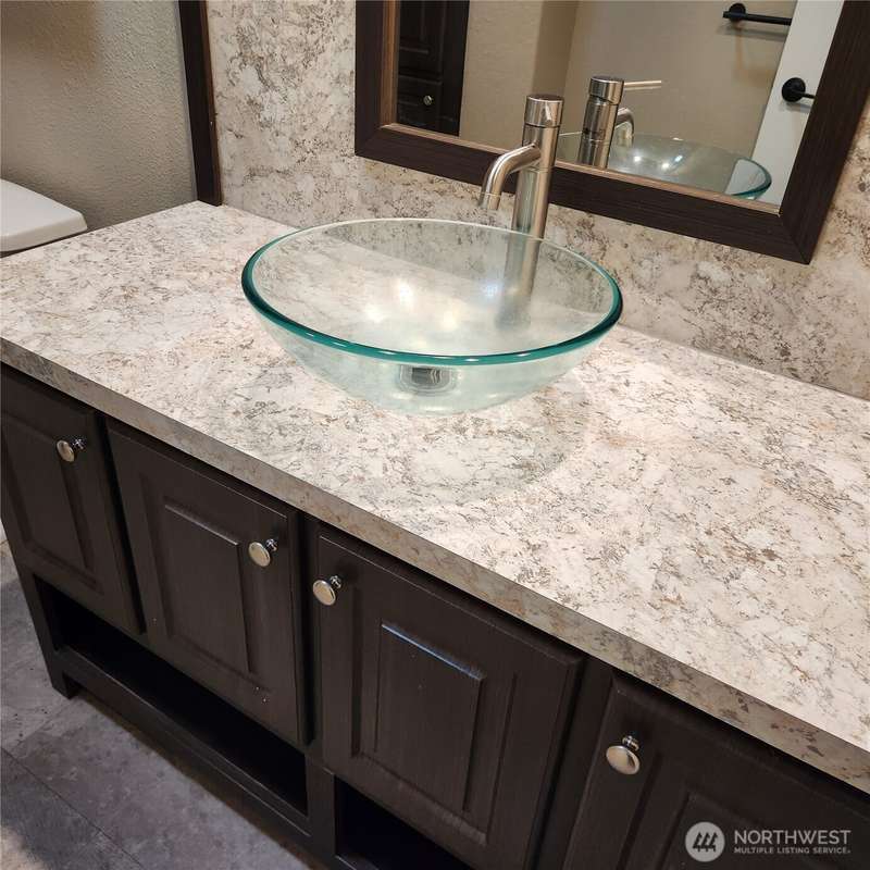 This cozy Manufactured home is almost new! Original owners have kept this home in great shape. The easy floorplan is open concept. Windows all around the living room let in a lot of natural light. A spacious main bedroom fits a queen size bed comfortably, a king might be a squeeze, There is an attached bathroom with a shower and facilities. The second bedroom has access to the guest bathroom with a tub shower combination. Okay, this is a small house, but it's not tiny! Perfect for a first time homebuyer. Downsizing is in! The front landscape was started and needs your TLC to help it along. Quiet neighborhood in the Timberlakes development. Boating and fishing, parks and playgrounds. a GREAT place to call HOME!