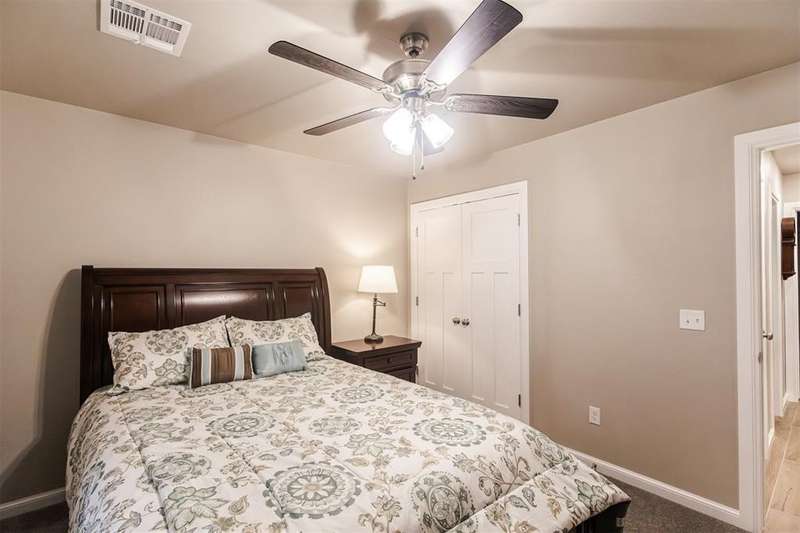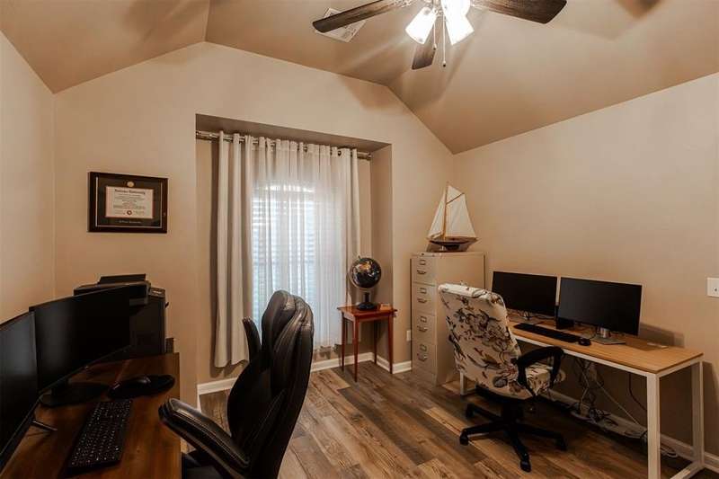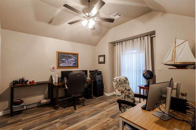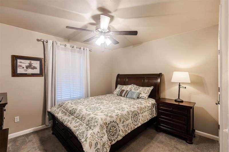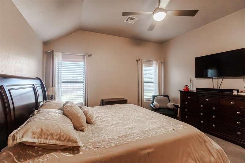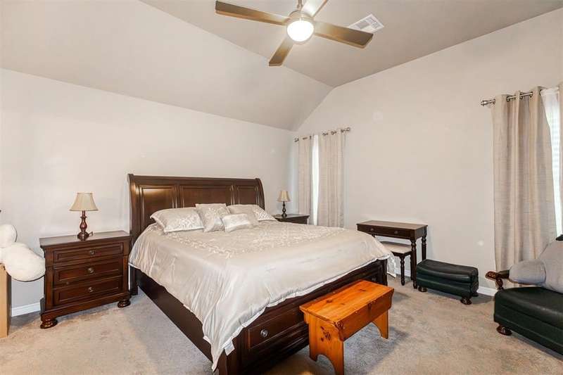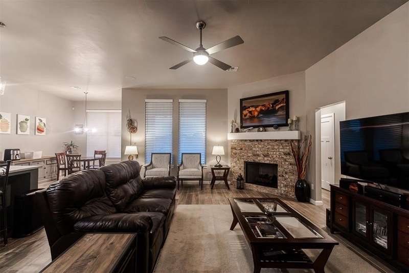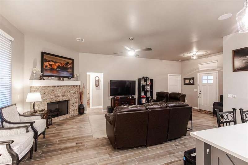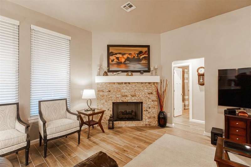 Open House! Sunday Nov. 02 2-4 pm Sparkling and move in ready in a Magnificent Warm and Friendly Neighborhood! A true beauty with classy brick and stone mix front! Light and Open Livingroom with gas log fireplace, light tones wood look tile flooring, a center island Kitchen with eating bar space and pendant lighting; new stainless steel gas stove and microwave! Split floorplan with private wing to King-size Primary bdrm. and luxury bath and walk-in closet. An abundance of storage space through-out, including a pantry, large closets, linen cabinet space, attic storage space. Front bedroom has cathedral ceiling and serves as 4th bedroom or a lovely home office. If you like a great garage, check out the garage depth that you can park your big truck, no problem plus a 6-8 person Storm Shelter! Out back the oversized patio and big yard are ideal for fun and relaxation with room for gardens or play equipment. Don't miss your chance to get your new home in time for the Holidays! Raywood Manor has landscaping all through the common areas, a flowing waterfall and a beautiful park with playground equipment, plus the Pool and Clubhouse for residents! Assumable loan for a Veteran Only who will qualify and substitute their VA Eligibility to snag this historical 2.6% VA loan with only 25 years remaining!