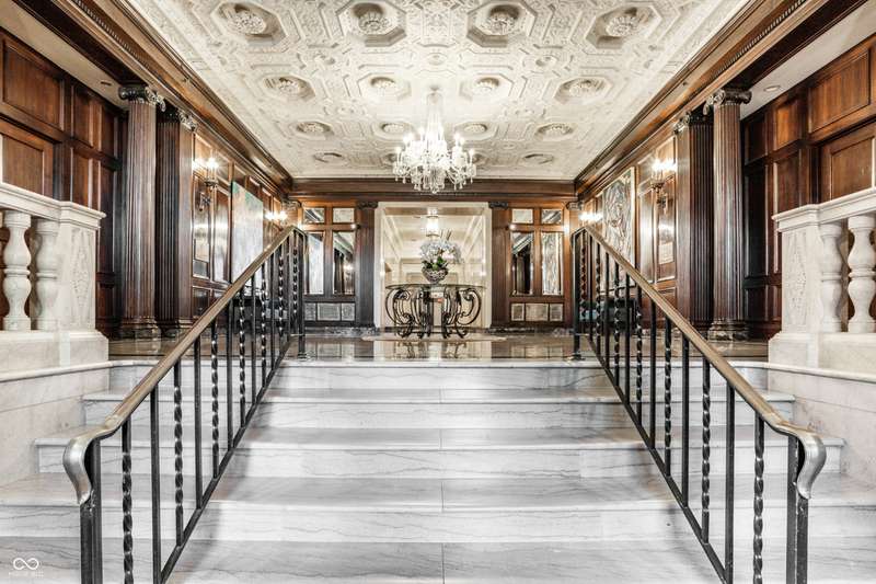 Units 606 and 607 in the Indianapolis Athletic Club were seamlessly combined to create an expansive and luxurious home inside one of Indianapolis' most historic buildings. The condo is fitted with every specialty one could wish for from the custom, built-in humidor in the sitting room, a modern, linear fireplace in the living room, and the most exceptional dressing room in the primary suite. The unique "L" shaped kitchen offers awesome entertainment opportunities with high end appliances, two bar spaces, ample counters, and a walk-in pantry. A built-in banquet in the dining room allows for cozy dinners and is open to the large family room. The primary suite is an incredible retreat with a spacious bedroom, two attached bathrooms for maximum privacy, a walk-in closet, and a completely custom dressing room with built-ins and refinished antique french doors leading to the bedroom. This tucked away space is truly one-of-a-kind. A light filled office provides terrific work from home or hobby space. With two additional bedrooms, there is ample space for friends and family! All of this is located in the heart of Indianapolis just blocks from all the fun the city has to offer - Basketball at Gainbridge, Football at Lucas Oil, dining and fun at Mass Ave or Bottleworks, and more. The historic building is both stunning and amenity rich with amazing woodwork and intricate design and loads of athletic offerings as its name implies - Basketball Court, Billiard Room, Fitness Center, Game Room, Pickleball Court, Sport Court, and Golf Simulator. The condo includes 2 secured attached parkings spots as well as 2 additional parking spots in the adjacent lot and a storage unit in the sub basement. Don't miss the rooftop deck with spectacular city views! Glass table, bench and 4 chairs will convey with sale. Additional furniture is available for purchase. Seller willing to prepay up to one year HOA dues or offer a 2-1 Buydown. See additional information attached to listing.