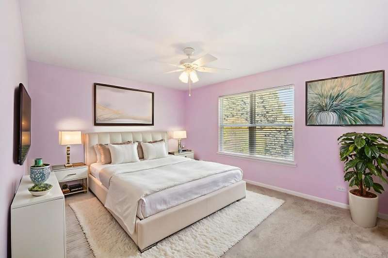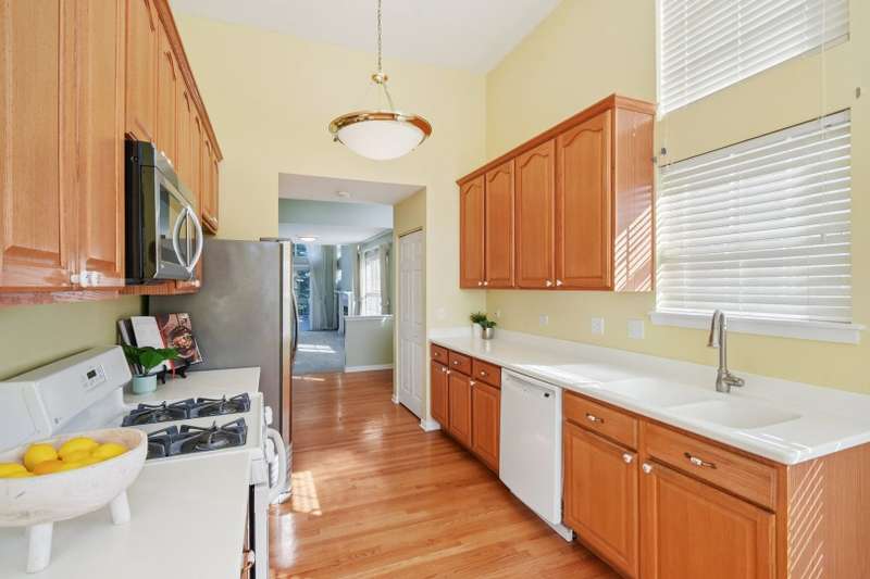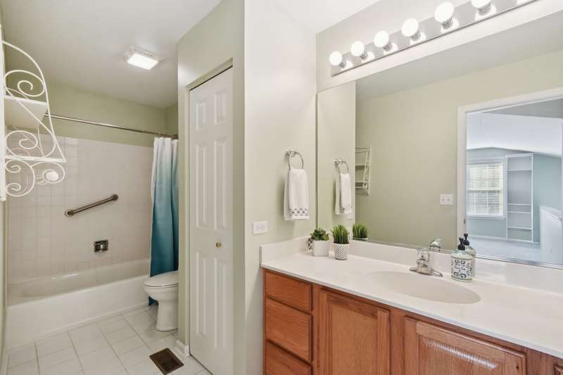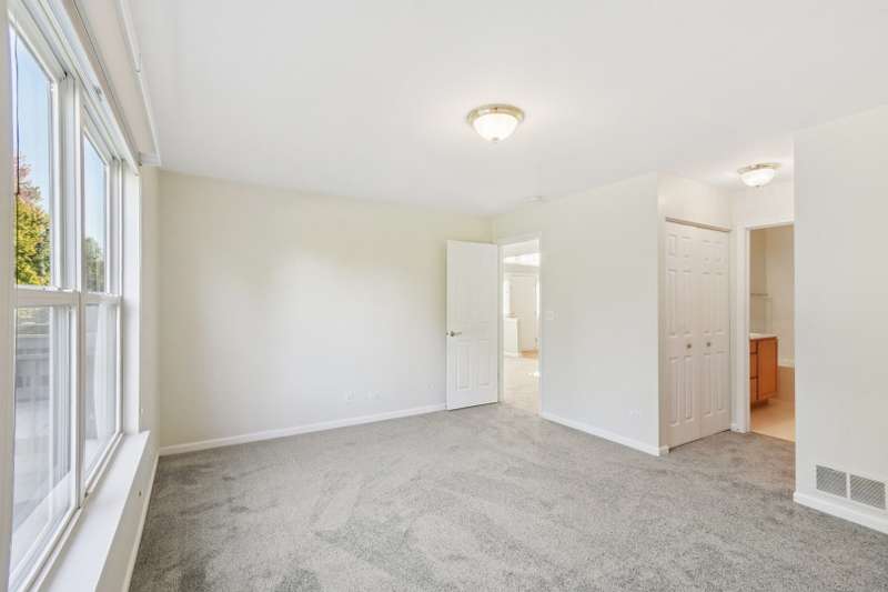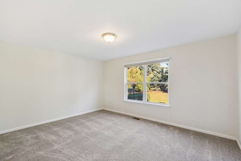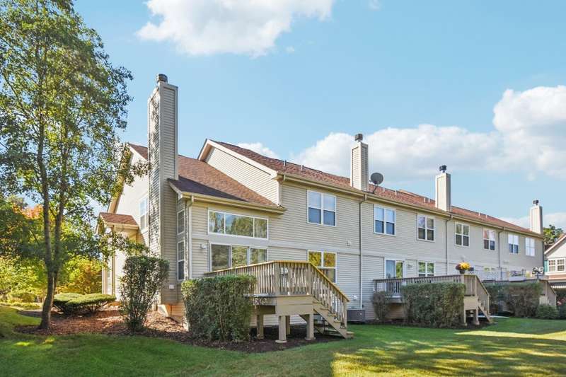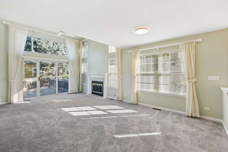 Beautiful sun filled end-unit townhome in desirable Renaux Manor of St. Charles! Enjoy easy living with a first-floor primary suite featuring dual sinks, a soaker tub, separate shower, and both a walk-in and wardrobe closet. The two-story living room with a cozy fireplace opens to the dining area for an inviting, spacious feel. The well-equipped kitchen includes a pantry and sunny breakfast nook, and the first-floor laundry and powder room add convenience. Upstairs, you'll find a loft with built-in bookshelves overlooking the living room, plus a second bedroom with walk-in closet and full bath. The sun-filled end unit offers a large deck overlooking open green space and a picturesque farm view. Other highlights include a large unfinished English basement with great potential for future living space or storage, and an attached two-car garage. Updates include BRAND New carpet throughout, new HVAC (2024), Hot water heater 2021, newer refrigerator, microwave, and toilets. Fantastic location just minutes to downtown St. Charles, Randall Road shopping and dining, and award-winning District 303 schools. Lives like a ranch with bonus space upstairs! Ready for quick move in!