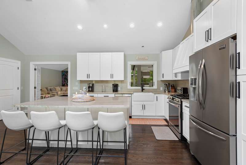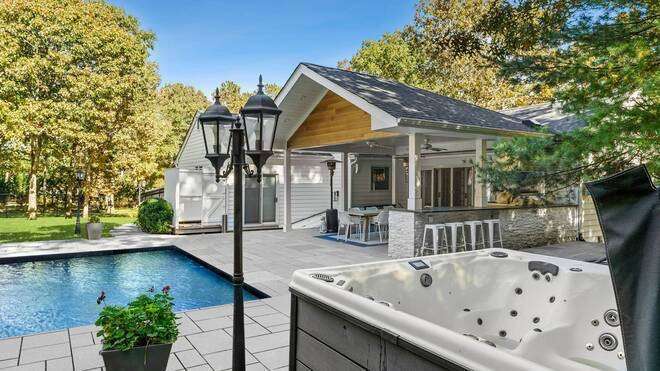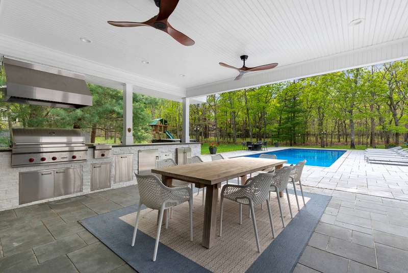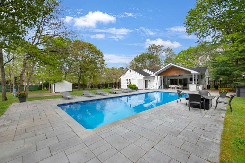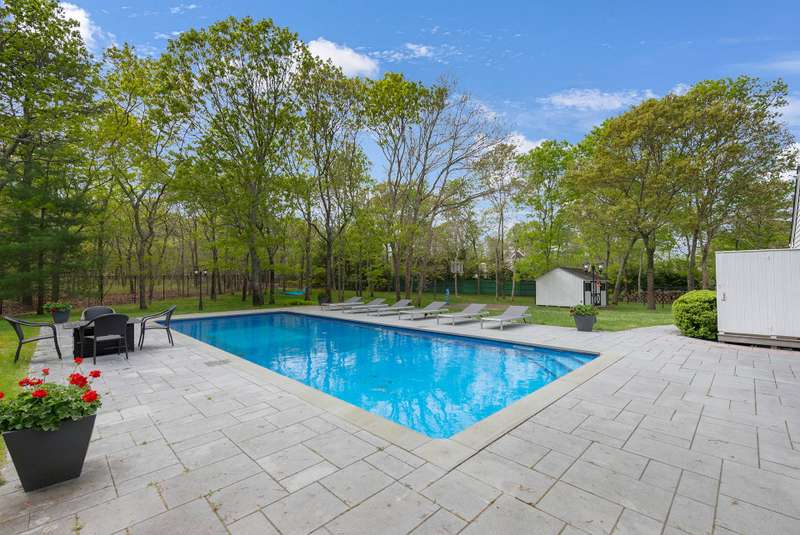 Rental Reg # 24-1045 Your Summer oasis awaits. Situated minutes away from both Sag harbor and East Hampton Villages and it's beaches, this renovated 4 bedroom and 4 bathroom with Pool and basketball is ready to embrace all the fun that summer has to offer. The gourmet kitchen features Silverstone countertops, a new Viking stove and Bosch dishwasher, and overlooks the dining area large enough to seat family and guests as they enjoy one of the two gas fireplaces. There are two en-suite bedrooms with renovated bathrooms as well as two other bedrooms and a shared bathroom on the main floor. There is also a large living/family room with its own gas fireplace and patio doors that flow seamlessly to the outdoor space. It's all about the outdoor living as this home boasts an expansive resort style covered blue stone patio which features a commercial grade outdoor kitchen with a Wolf grill and side burner, Sub-Zero outdoor refrigerator, ice maker, granite countertops, wine fridge and a covered seating and bar area with LED lighting, a television and ceiling fans. Some of the other bonus features include the 20' x 40' heated pool with saltwater filtration system and outdoor shower, and a basketball court for the occasional one on one. The finished lower level offers bonus areas and additional family room with TV and full bathroom. Come see for yourself and make this home your summer paradise.