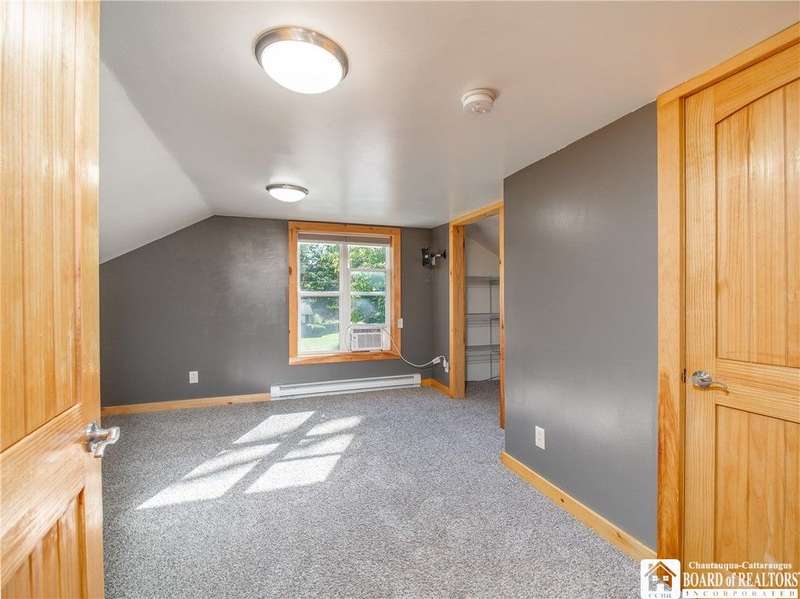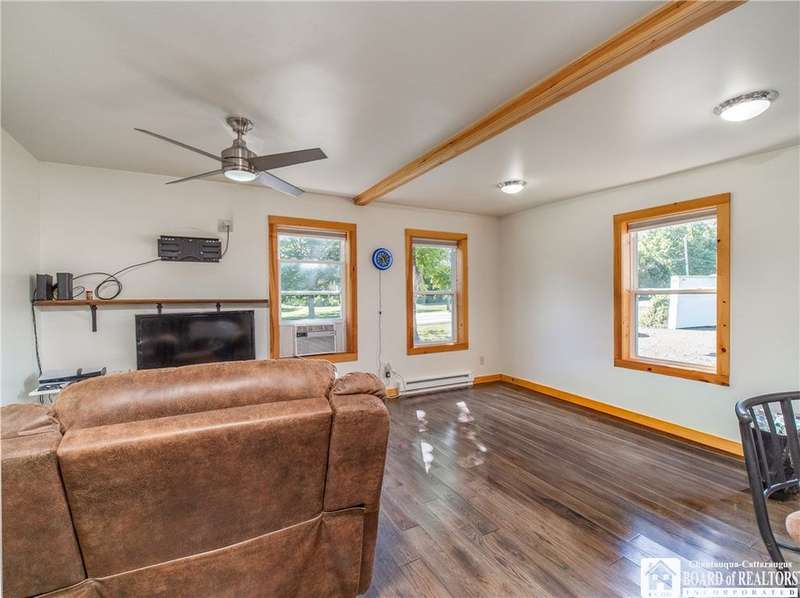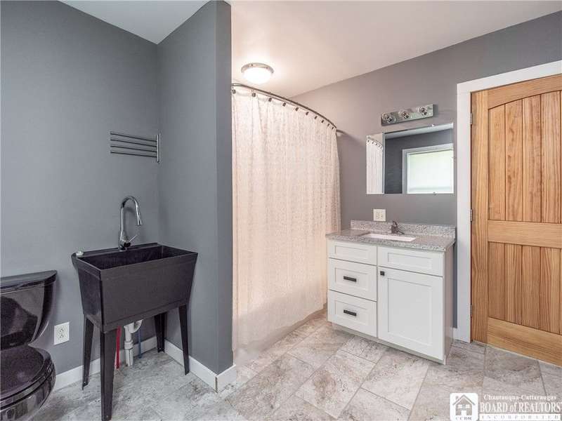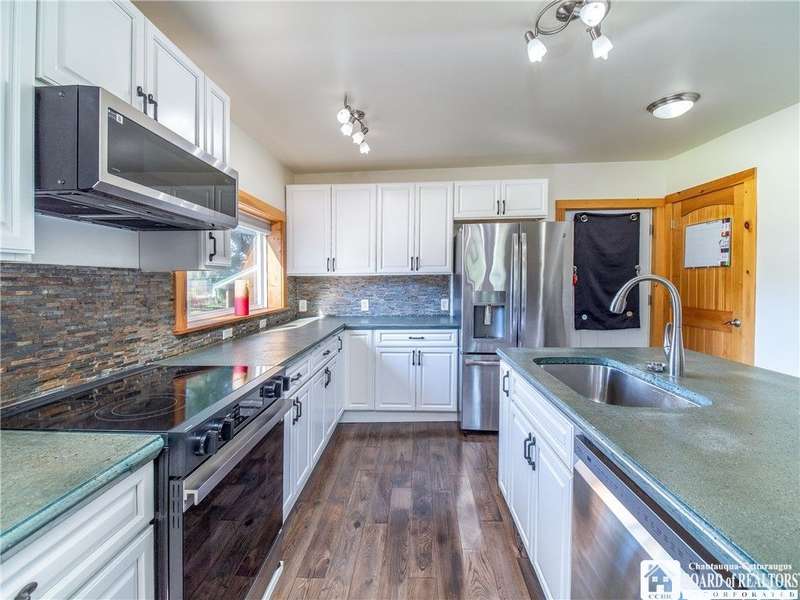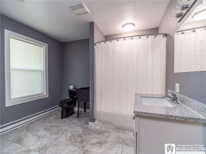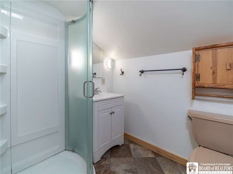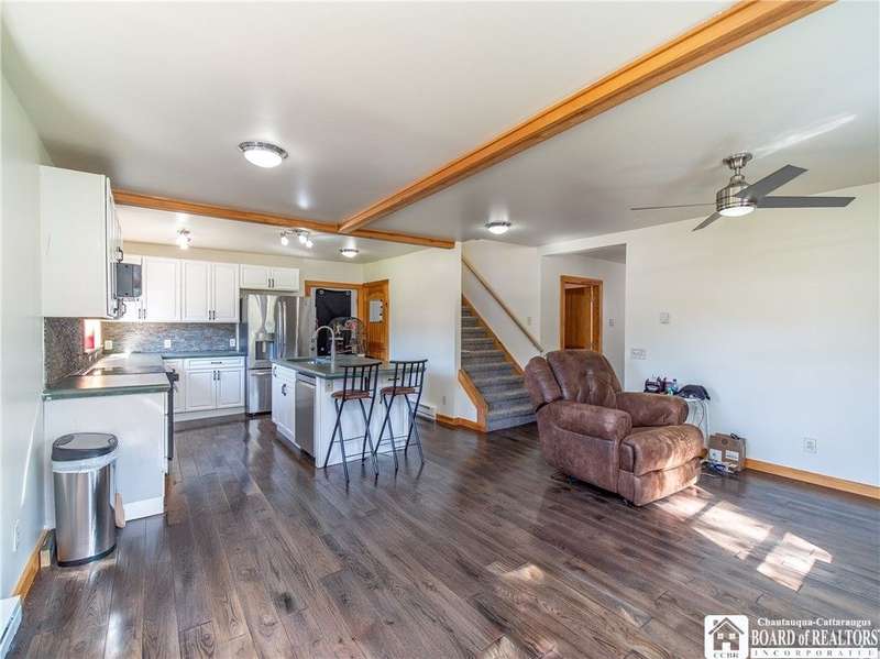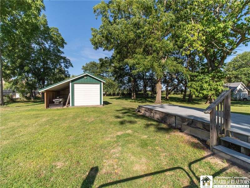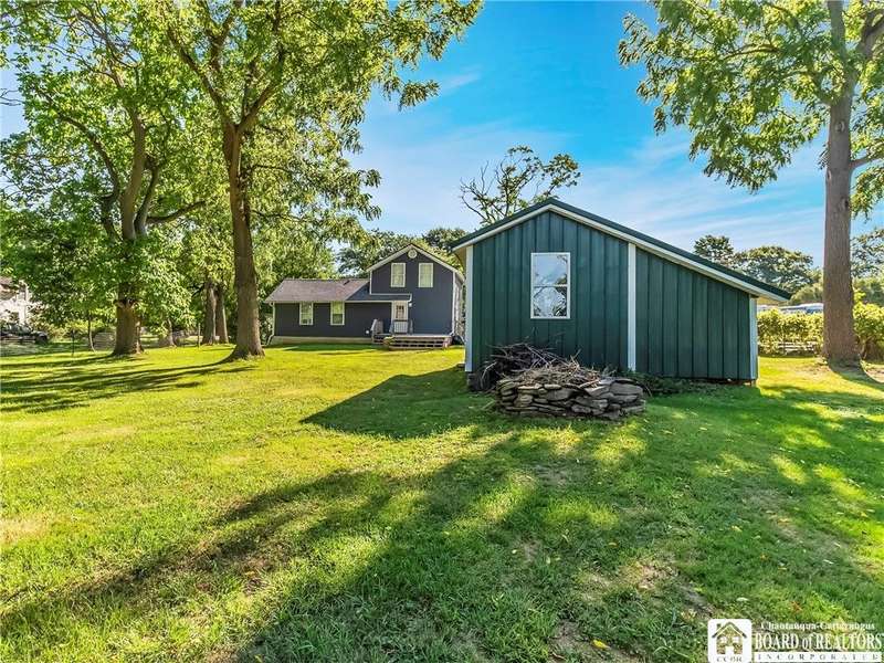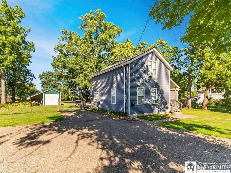 This 3-bedroom, 2-bathroom home sits on over half an acre in the village of Westfield. The kitchen features stainless steel appliances, a center island with seating and storage, custom concrete countertops, and ample cabinet space. The main level includes a bedroom and a full bath with laundry, generously sized with room for storage. The living and dining areas are combined, creating a flexible space for everyday use. Upstairs, you'll find the primary suite with a walk-in closet and private bath, along with another bedroom overlooking the vineyards.The outdoor space includes a large deck, fenced yard, and a detached garage with an attached lean-to for added storage. Close to the Chautauqua Gorge for hiking, fishing, and exploring outdoors. Don't miss the opportunity to make this property yours.