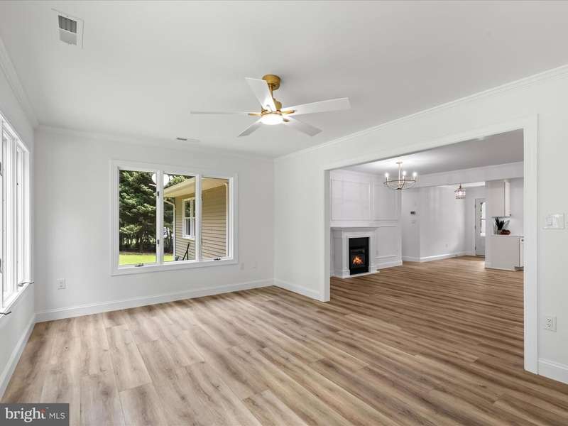 Nestled in the charming Oakwood community, just a short drive from Delaware's resort towns and miles of pristine coastline, you'll find 30934 Hickory Lane, an exquisitely remodeled home that surprises and delights at every turn. Perched on a gentle rise at the end of a cul-de-sac, this beautifully reimagined three-bedroom, two-bath residence is a true standout. You're welcomed by a level of design and craftsmanship that exceeds all expectations. The open floor plan showcases fine architectural details including wide-plank luxury vinyl flooring, custom feature walls, extensive crown molding, judges paneling, shiplap, and not one but two statement fireplaces. Every finish speaks to thoughtful design, from the high-end quartz surfaces and large-format tilework to the custom lighting that sets the perfect mood throughout the home. At the heart of the home is a gourmet kitchen that's a dream for any chef. It features expansive quartz countertops for meal prep, 42-inch custom cabinetry, a deep pantry with custom built-ins, suite of stainless-steel appliances, and a generous center island ideal for casual gatherings. Just off the kitchen, the dining and living spaces flow beautifully, accented with designer lighting and a cozy fireplace surrounded by elegant judges paneling, perfect for entertaining guests or enjoying a quiet evening in. Additional living spaces include a spacious family room offering lovely panoramic lawn and garden and impressive landscape views, and a formal living room highlighted by a shiplap feature wall and another fireplace, creating a warm and welcoming retreat. The private sleeping quarters are equally impressive. The serene primary suite offers a spa-like experience with its luxurious ensuite bathroom, finished in exquisite tilework and designer lighting. Two additional guest bedrooms are uniquely styled and a beautifully appointed hall bath, bathed in natural light from a skylight above awaits visitors. When it's time to work or create, the sun-drenched solarium provides an inspiring space with vaulted ceilings and skylights. The garage is a standout on its own, fully finished with epoxy floors, a laundry center, and its own mini-split heating and cooling system, making it the perfect spot for hobbies, work, or additional storage. Above, a walk-up attic spans the length of the home, offering even more storage with lighting already in place. Outdoors, a patio with a fire pit offers the ideal setting for gatherings, all framed by mature trees that provide both beauty and privacy. A spacious shed with a workshop area completes the picture, ready to house your beach gear, tools, and landscaping equipment. Property Survey on file.