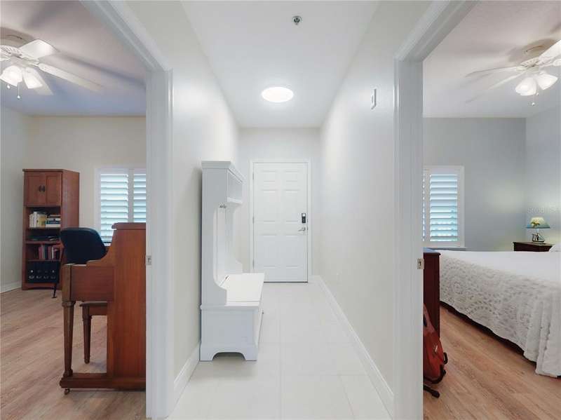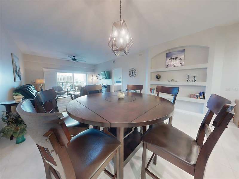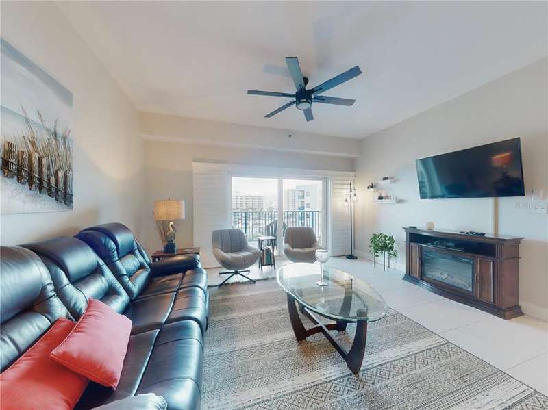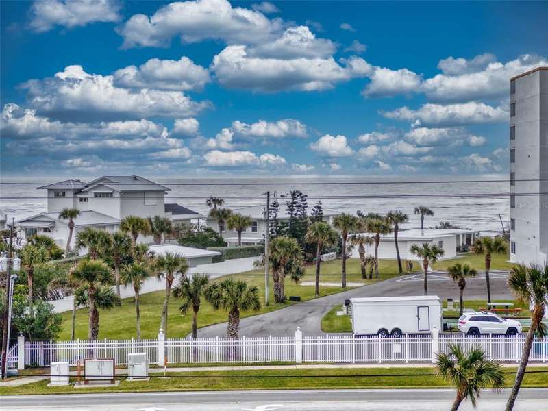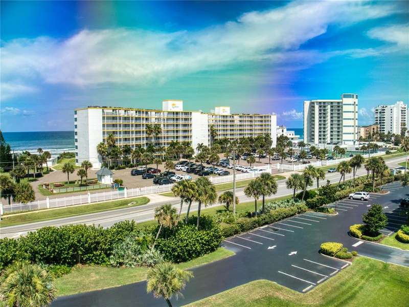 OCEAN VIEW AND UPDATED UNIT. Experience coastal living at its finest in this beautifully updated beachside condo, located in the highly sought-after Ocean Walk community. Enjoy breathtaking ocean views from the comfort of your home, with its carefully chosen upgrades for style and convenience - new modern ceiling lighting, renovated bathrooms with quartz countertops and kitchen with stone, all walls woodwork and grout freshly painted, bedrooms with new lifetime vinyl flooring, new plantation shutters throughout and tinted veranda windows to maximizing energy efficiency. Beautiful living room, dining, and master suite furnishings are negotiable to ease your move-in, even an electric fireplace for evening ambiance and chilly mornings. The unit boasts a brand new water heater and a 2021 microben air handling system. The Ocean Walk complex offers an unbeatable resort-style lifestyle with two clubhouses, tennis courts, a relaxing sauna, a private beach access and a scenic boardwalk along the estuary. Take advantage of two sparkling swimming pools with plenty of lounge chairs, perfect for soaking up the Florida sun. The community is pet- and kid-friendly and provides ample guest parking. Added value - Bldg 3 has undergone a full restoration process including a new roof and has reserves fully funded. The enclosed garage offers convenience and security. The location of Unit 504 offers a unique natural spectacle - radiant sunsets that at times glow with color from the estuary side streaming through the back bedroom window and filling the ocean-facing living room with breathtaking hues.