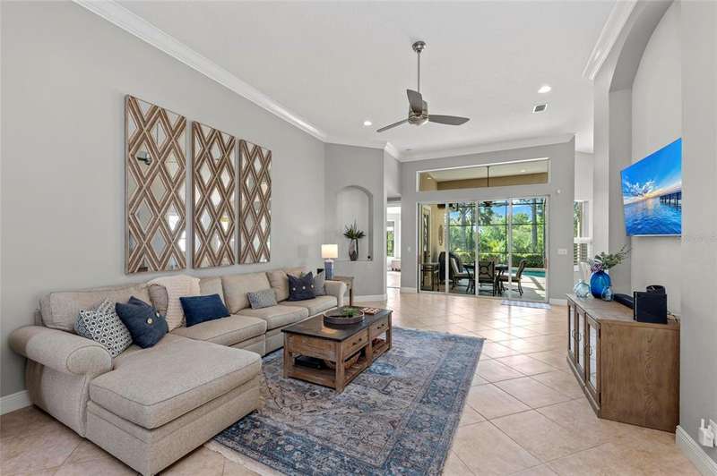 Discover the epitome of sophistication and charm in this breathtaking model-quality home offered TURN KEY and nestled within the heart of Lakewood Ranch. Framed by lush landscaping, a serene preserve view, and a striking stone elevation, this residence offers a truly unforgettable first impression.Step inside and be captivated by the exquisite architectural details that adorn every corner. From the foyer's tray ceiling to the decorative niches and crown molding that grace the living areas, this home is a harmonious blend of elegance and comfort. The kitchen is a culinary haven, bathed in natural light and outfitted with top-of-the-line stainless steel appliances, a gorgeousl backsplash, elegant wood cabinetry, granite counters, a convenient breakfast bar, and a spacious pantry. Whole house water purification for the cleanest water!!French doors lead to a generous den with laminate flooring, and a built in Murphy bed perfect for a cozy retreat or home office. The guest wing, tucked away on the other side of the home, ensures privacy and tranquility for visitors. The master suite is a sanctuary of luxury, featuring a tray ceiling, expansive-in closets, access to the lanai, a charming sitting, and a deluxe garden tub for ultimate.Sliding doors from the great room reveal a stunning pool area, where the preserve view provides a private and picturesque backdrop for entertaining. Lakewood Ranch Country Club offers optional social, fitness, and golf memberships, with resort-style amenities including a private country club, three 18-hole championship golf courses, tennis and pickleball courts, a 24-hour fitness center, and a vibrant social calendar.Located in the heart of Lakewood Ranch, you're just minutes away from downtowns, University Town Center with its abundant dining and shopping options, and the charming Main Street, only 1.2 miles away, featuring a theater, entertainment, restaurants, retail, and community events. For outdoor enthusiasts, miles of trails and several parks are just minutes from the house, offering endless opportunities for exploration and adventure. Don't miss the chance to call this extraordinary residence your home.