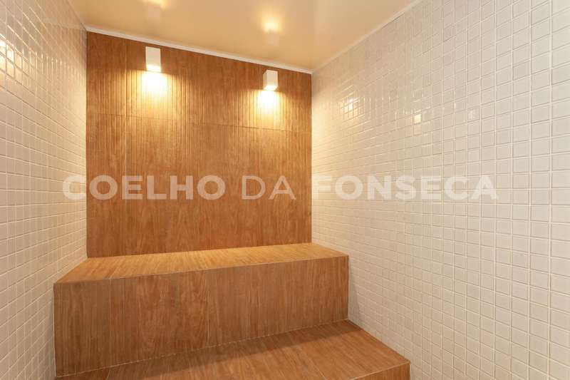 Também tem na unidade fitness, sauna úmida com ducha e escritório,