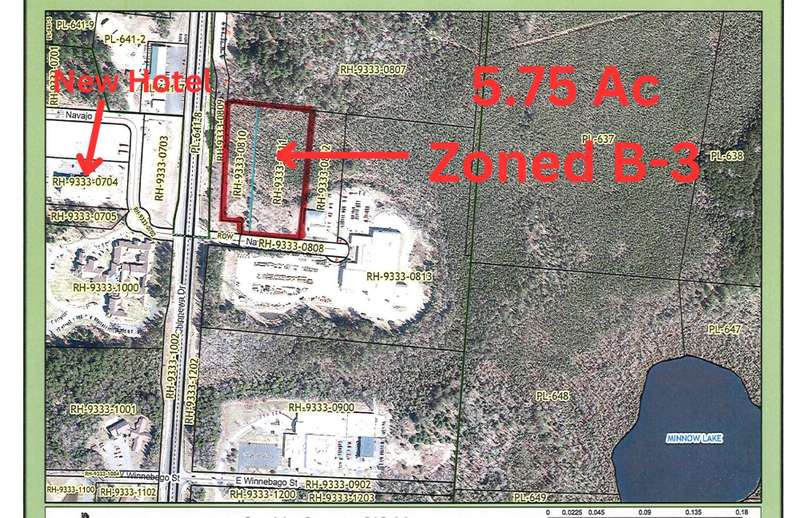 Prime commercial lots across the road from new hotel, MINUTES TO local HOSPITAL, big box stores, and sandwich shops and national chains! Don't miss your opportunity to develop on one of Rhinelander's premium location, Zoned B-3 General Business. This 5.75acre parcel is 150 feet off Hwy 17/Chippewa Dr with +/- 283 feet of frontage on Navajo St. with 11,300 traffic count on Hwy 17. Buyer to verify all information.