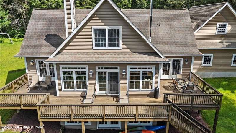 Lakefront retreat on 41 acres with 464' of lake frontage! This breathtaking home, built in 2005, offers the perfect blend of privacy, luxury, and natural beauty. Featuring 3 spacious bedrooms-including a main-level primary suite with a cozy fireplace-2.5 baths, and a wide-open floor plan with walls of glass that seamlessly bring the lake views indoors. The fully finished walkout lower level includes a large family room and additional space to relax or entertain. Enjoy views from the lakeside deck, level frontage with a firepit, and an oversized attached 2-car garage. Inside, you'll find a double-sided fireplace, a mud/laundry room, and a stunning custom kitchen with quartz countertops and a center island. The home is equipped with fiber optic cable, delivering lightning-fast internet speeds and seamless wireless connectivity-perfect for streaming, gaming, or working from home.' Panoramic lake views from nearly every room! Located on Spruce Lake, where both motorized and non-motorized boats peacefully coexist. Enjoy nearby biking and snowmobile trails, with Elk Mountain Ski Resort just 15 minutes away. Short-Term Rentals Allowed. This home is being sold turn-key. All furniture is included with only a few exceptions. Also included: art, appliances, kayaks, canoe, tv's, hand & lawn tools, gym equipment, rugs, bedding, some kitchen items. Some exclusions. Move right in and enjoy lake life!