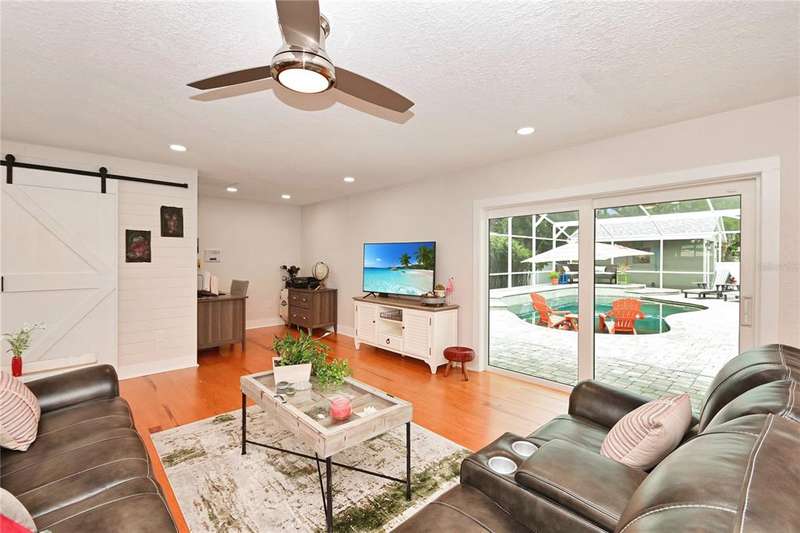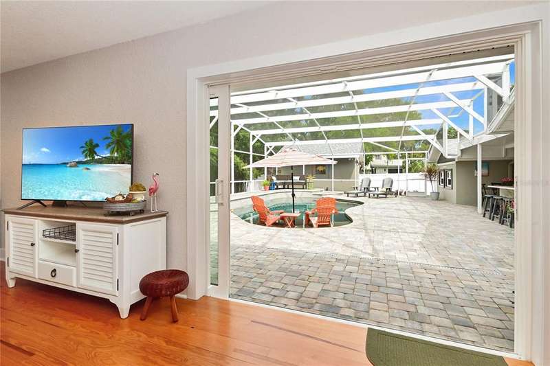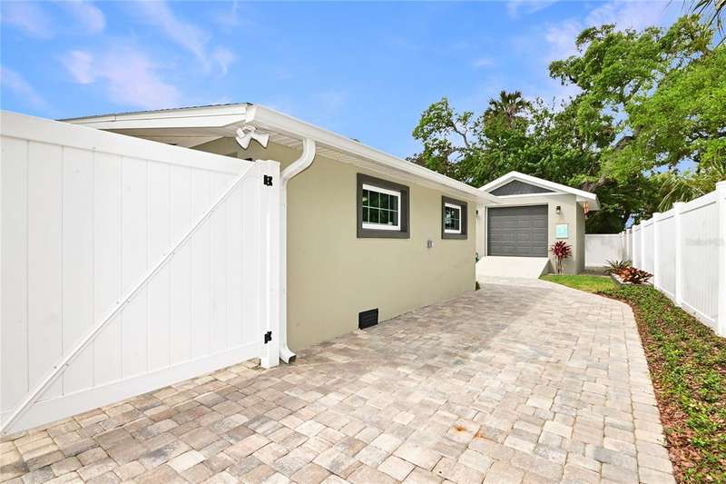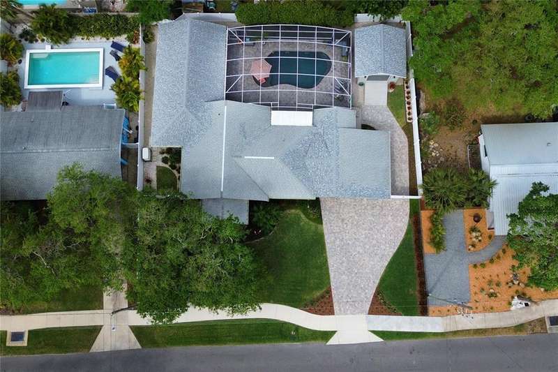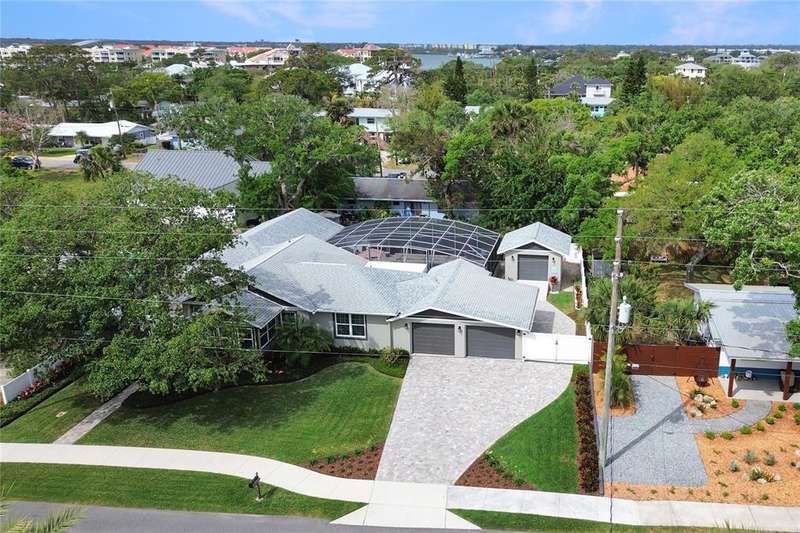 Move in. Go to the beach. Come home. Relax at your private pool. Located on one of the few beachside streets with a sidewalk for a leisurely five minute stroll to Norwood's or The Garlic. This immaculate maintained home needs nothing done and it checks all the boxes for the New Smyrna Beach lifestyle! This home is centrally located in the heart of beachside living. It's only three blocks to the river, four blocks to Flagler Avenue, five blocks to the beach and across 3rd Avenue to the nearby Publix. This 3-bedroom, 2-bath, 2.5-car garage, pool home sits on a hard to find 100’ double lot and has plenty of space for extra parking, boat storage and more. Upon arriving you’ll notice a professionally landscaped yard, fully automatic sprinkler system and paver driveway. It’s the best of historic charm with heart of pine wood flooring, while also being fully renovated for modern comfort. This includes energy saving upgrades: new windows and doors, spray foam insulation and two A/C systems. The entrance opens to a sunroom perfect for social visits or simply reading a book. Thoughtful floor plan includes separate living and family rooms. The fully renovated kitchen includes GE stainless appliances, wood cabinets with Carrera Marble countertops and a double porcelain farm sink. This home includes an indoor laundry room, office niche and extra decked storage space in the attic with pull down access stairs. There are numerous upgrades including shiplap walls, recessed LED lighting, hurricane rated PGT windows and high end window treatments. The family room extends out to the expansive screened pool deck via hideaway pocket slider doors. The saltwater pool has Pebble-Tec finishing with water features, sun shelf, self-cleaning floor system for low maintenance and an outdoor shower. There’s also a covered summer kitchen with a granite countertop bar, gas grill and mini fridge. There is plenty of room for all your toys with the driveway extending around the house to a detached garage. It can be used as a workshop, golf cart/motorcycle storage or a studio. There’s even a separate "SHE SHED" for all you garden and craft enthusiasts! This elevated home is hurricane ready with a whole house Generac generator and an on-demand water heater, both connected to natural gas. It is perfect for parking your car and forgetting it! Use your golf cart, bicycle or walk to the nearby pickleball courts of Detwiler Park. Launch your kayak at Callalisa Park or hop over the river to Historic Canal Street. All measurements are approximate.