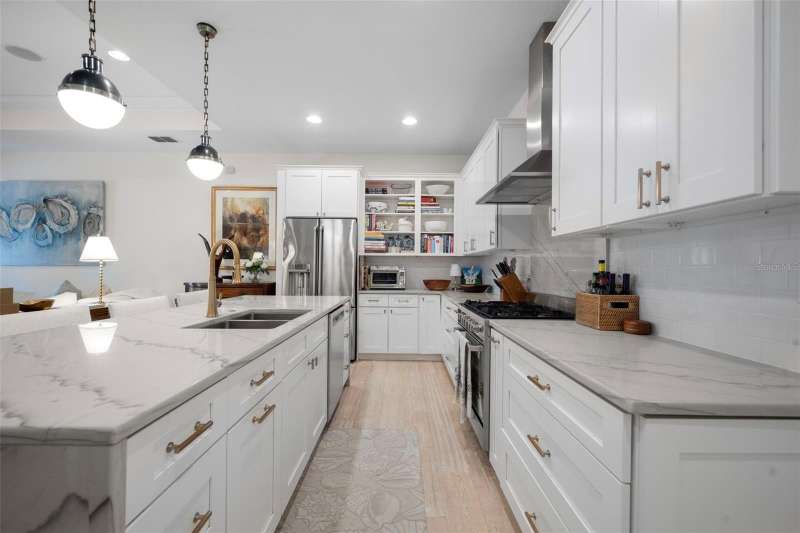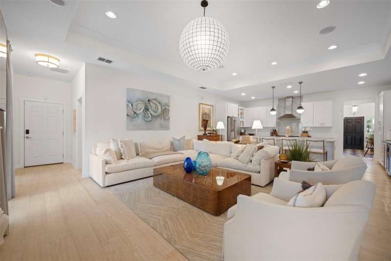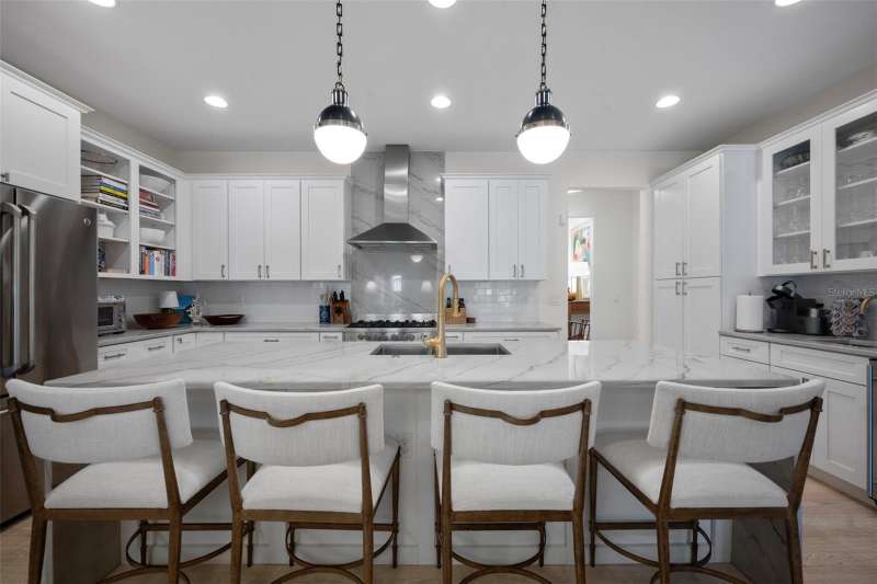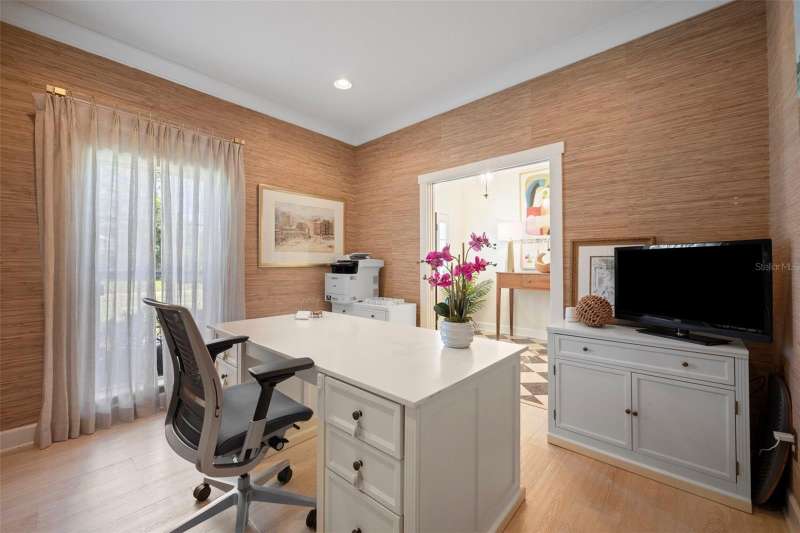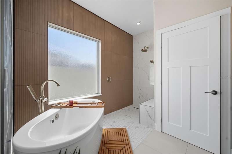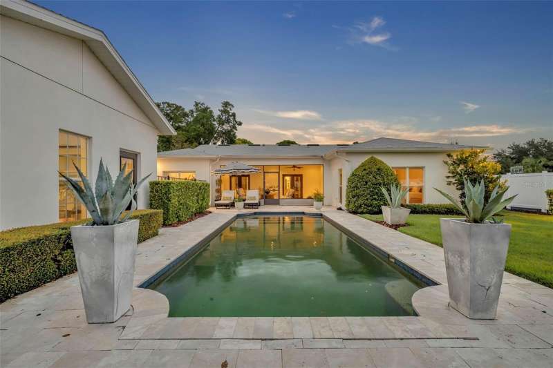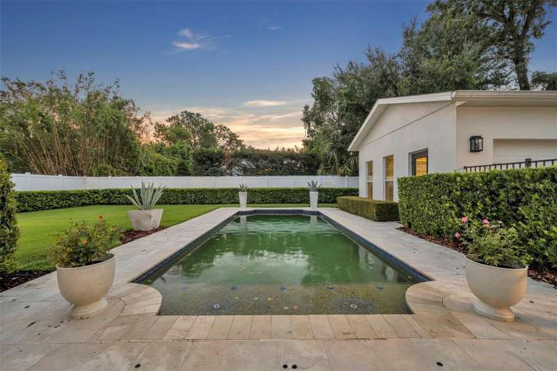 Welcome to this stunning SINGLE STORY five-bedroom home with high ceilings, in one of Winter Park’s most desirable neighborhoods, where charming restorations and luxury new builds create a vibrant community feel. Designed with both beauty and comfort in mind, this open-concept home offers bright, welcoming living spaces and thoughtful upgrades throughout. Completely rebuilt in 2014 and tons of upgrades completed in 2025. The home sits on a 1/3-acre lot with 5 bedrooms and 3 ½ baths plus an office and features a 4-way split plan with privacy for all. Upon entering, you're greeted by an open floor plan with marble foyer and white oak engineered wood flooring. The Owners' Retreat is a true sanctuary, featuring newly sanded and smoothed walls with luxe finish, automatic Hunter Douglas shades and an artful chandelier. The brand-new spa-inspired bathroom (2025) showcases the best in design and function which includes Kohler Bask heated surface tub, private toilet room with heated seat, auto lid and integrated bidet. The primary bath also has a new expanded shower, a new double sink vanity and Kohler champagne brass fixtures. The Family/Gathering space with an open chef's kitchen includes a stainless gas range, French door refrigerator, waterfall Quartzite counters and touchless kitchen and bar champagne faucets. The great room has a modern electric fireplace and leads to a screened porch and overlooks the salt water pool and large fenced backyard. Black metal remote controlled gate leads to the large 2 car detached garage with a side entry for grocery and package drop off. Home has updated cameras and security with touch screen keypad. Smart home technology Lutron lighting to schedule and control lights with mobile or Google home. Redesigned Laundry and 1/2 bath with beautiful designer wallpaper and tile and Samsung washer/dryer integrated single unit. Ideally located in one of Winter Park's coveted neighborhoods, with easy access to Park Av, Phelps Park, YMCA and Rollins College. Excellent schools, Lakemont Elem, Maitland Middle and Winter Park High. This is a rare offering of a newer one-story home, that is move in ready in the heart of Winter Park. A Must See!