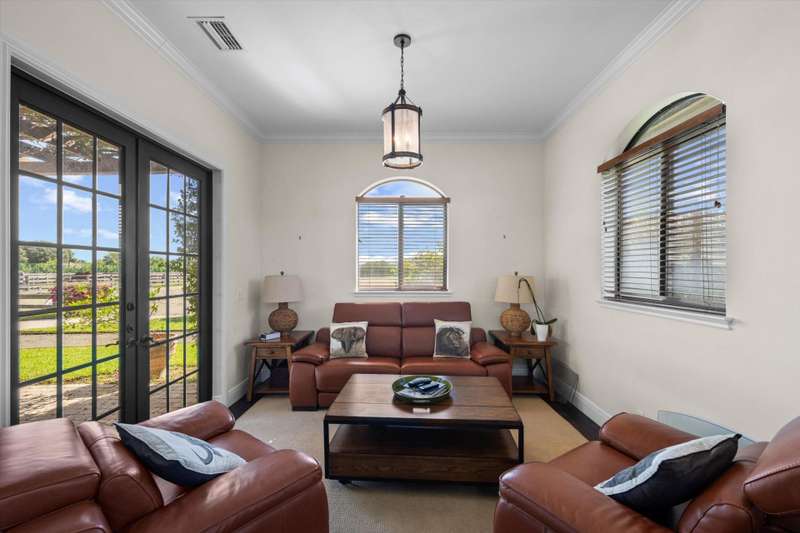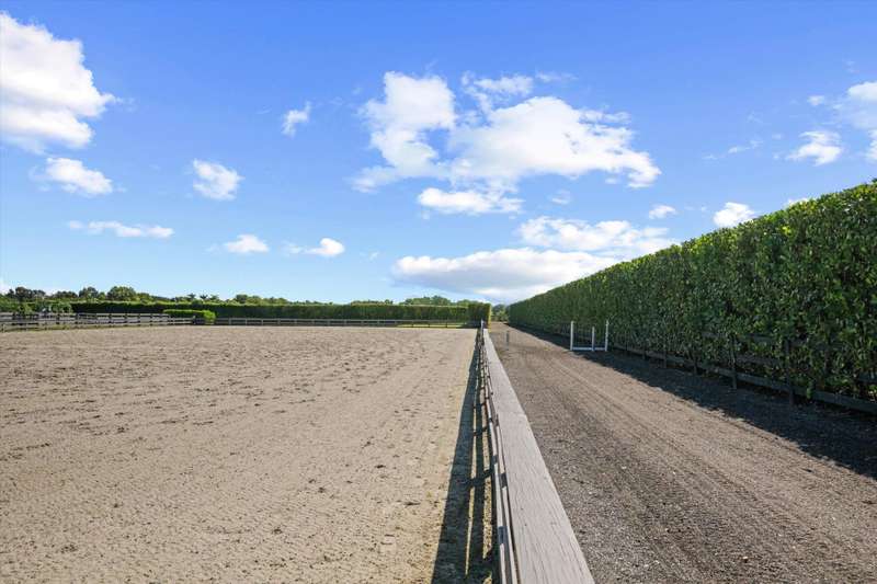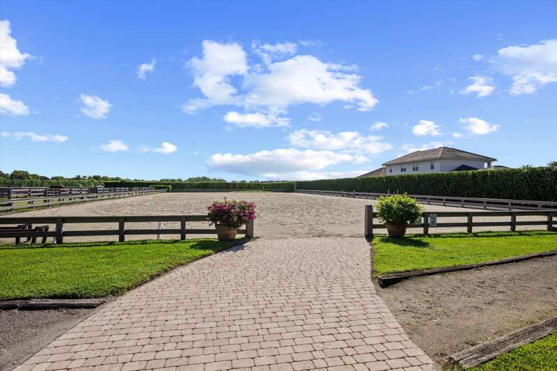Experience the ultimate seasonal rental at a premier farm in the coveted Grand Prix Village. Ideally situated within walking distance of Wellington International, this property boasts exceptional equestrian facilities, including 16 stalls, an all-weather riding arena, and two 1 BD/1 BA staff quarters. The farm is fully equipped with 2 tack rooms, a feed room, laundry room, and ample storage areas. Unwind in the owners lounge featuring a cozy living room, kitchenette, and full bathroom, or enjoy the view of the arena from the covered patio--a perfect spot for relaxing or watching the days events. With 4 spacious paddocks and a large parking area, this farm has everything you need for a seamless equestrian season, just steps away from all the action!