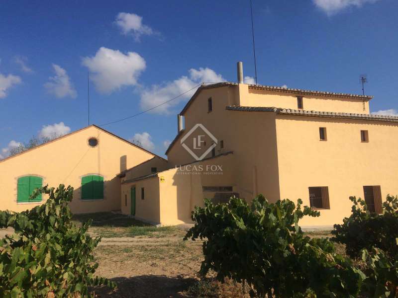 Spectacular listed masia dating back to the 17th century, located in the Alt Penedés area, just 30 minutes from Sitges. The estate includes 15 hectares of private land with D.O cava and Penedés vineyards. It consists of the main farm house and several large outbuildings. The main house has 3 floors and features a large entrance hall, 4 rooms that may be used as bedrooms and another room with a large period fireplace on the ground floor. The first floor has 5 rooms and a bathroom, and the top floor is an open plan multipurpose space. The entire property has recently been renovated and is presented in very good condition with attractive features such as tiled floors and wooden beams on the ceilings. As an annex of the main house we have the 2-storey staff house, including 2 rooms and a kitchen with a fireplace, on the ground floor and 2 bedrooms and a bathroom on the first floor. The remaining outbuildings are mainly open plan structures, including a large room which leads out to a wonderful terrace overlooking the vineyards. Next to this is the antique wine cellar, a vast space with exceptionally high ceilings with original wooden beams. This vast space could be converted into various independent properties. All of this is set within an immense private plot with 15 hectares of D.O cava and Penedés vineyards and its own water supply; ideal for anyone wishing to produce their own wine. The vineyard is currently tended and cultivated by a local share cropper with the owner receiving a quarter of the production without any work or investment. An interesting option would be to divide the buildings into holiday apartments or to use the generous area as a restaurant, hotel or rural tourism project. A unique opportunity with several business venture options in Alt Penedés.