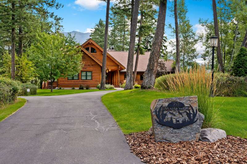 Mountain lodge living in Big Sky Country! Discover the perfect blend of privacy, comfort, & convenience in this stunning 3BD/4BA, 4,299 SF log home nestled on 2.685 acres in a quiet, park-like setting. Surrounded by mature trees & beautifully landscaped grounds, the property offers a serene wooded lot w/ inviting outdoor spaces. Enjoy Montana evenings around the outdoor fire pit, or unwind in the fenced side yard, ideal for pets or gardening. Elevated, unobstructed views of the Swan Mountain Range create a breathtaking backdrop, with a circular driveway leading to the home's welcoming entrance. Inside, expansive living spaces and thoughtful design capture both elegance & warmth. Perfectly situated between Columbia Falls, Kalispell, & Bigfork, this location provides quick access to everyday amenities. Glacier National Park is just a 30-minute drive away, & Whitefish Mountain Resort, Flathead Lake, & the Bob Marshall Wilderness are within easy reach for endless year-round recreation.