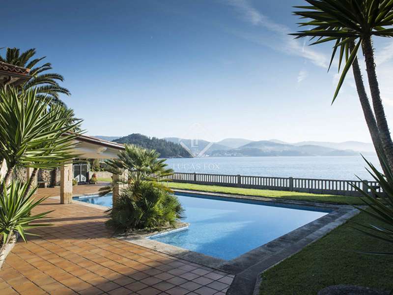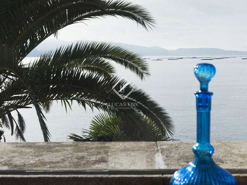 This villa is in a very privileged location in the area of Rías Baixas in Pontevedra. From all floors and rooms you can enjoy the breathtaking views of the coast of the Rías Baixas. The spaces are distributed across 3 floors, all with a perfect orientation to make the most of the panoramic sea views. There are several terraces from which to enjoy this incredible location even more. The house has easy direct access to the beach, as well extensive private gardens with well kept lawns, hidden chill-out areas, quiet outdoor eating areas and shaded spaces under the beautiful palm trees, as well as natural water fountains. The main floor of the house offers a large living room, dining room, fully equipped kitchen, another living room, library, games room and gallery. All rooms offer panoramic sea and mountain views. The first floor houses the sleeping area, consisting of a master bedroom with private bathroom and dressing room, another double bedroom with private bathroom, and 2 additional double bedrooms sharing a bathroom. The ground floor features the beautiful summer kitchen with a traditional-style oven, bar, wine cellar, kitchenette, lounge, typical Galician "Lareira" fireplace and dining area with direct access to the pool and garden. There is an additional guest bedroom with bathroom. There are three different ways to access the beach, two via the ramp for vehicles and boats and another directly to the sand. Please note that the property has the certificates and documentation up to date with the Xunta de Galicia. Contact us for more information on this property for sale in a beautiful natural environment.