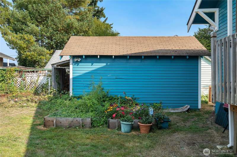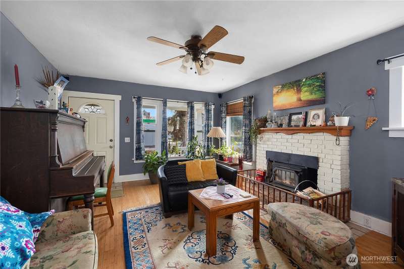 Charming Craftsman home, on a desirable corner lot! This 2 bedroom, 1 bath home features beautiful hardwood floors, a spacious kitchen with eating area and classic character throughout. Woodstove to keep you warm on those chilly, PNW days! The large basement offers endless possibilities and features an extra finished room. The fully fenced yard has plenty of room for outdoor activities. There is a detached garage for storage or parking. The cozy, front porch offers a covered, outdoor sitting space. Convenient location with quick and easy access to all amenities and HWY 101. Don't miss this great opportunity!