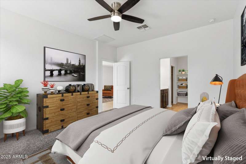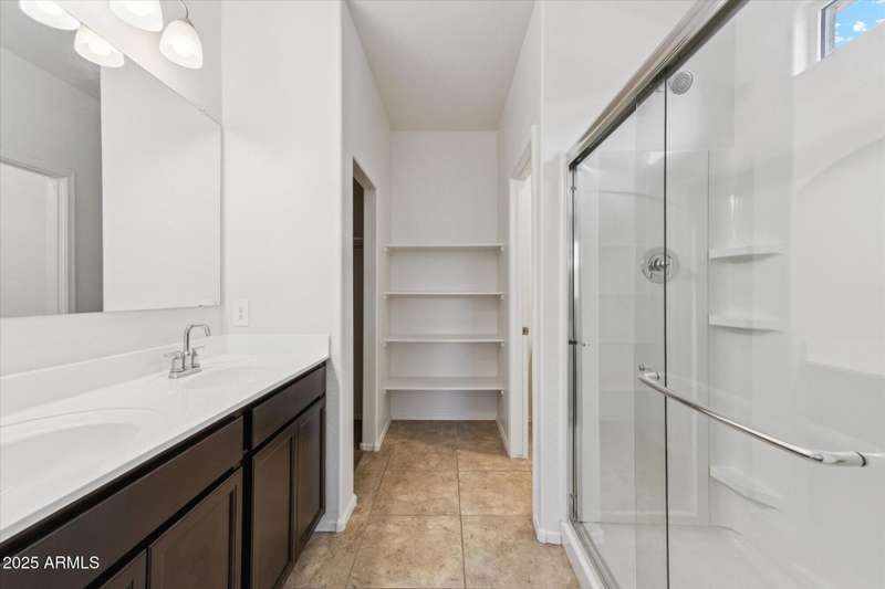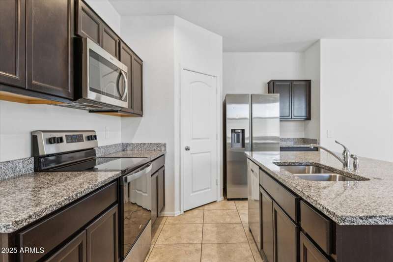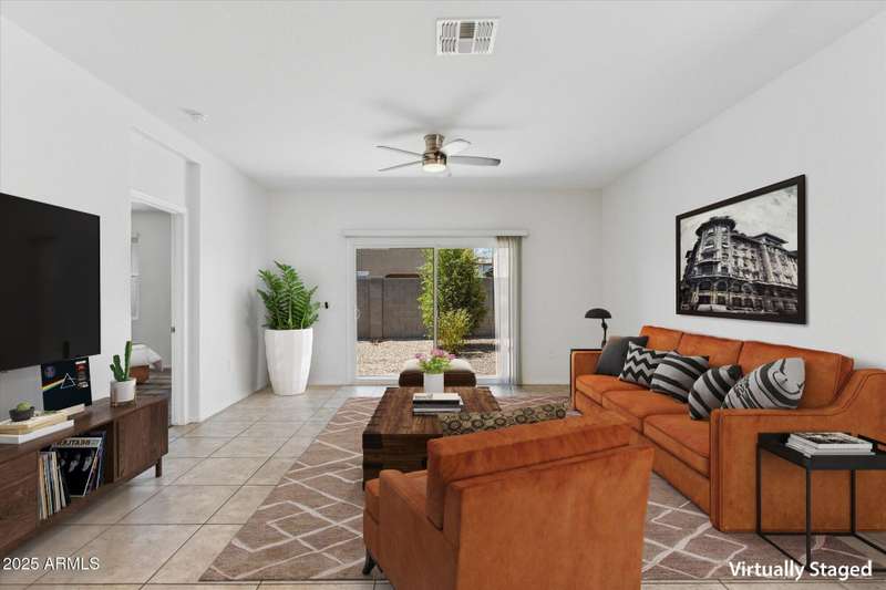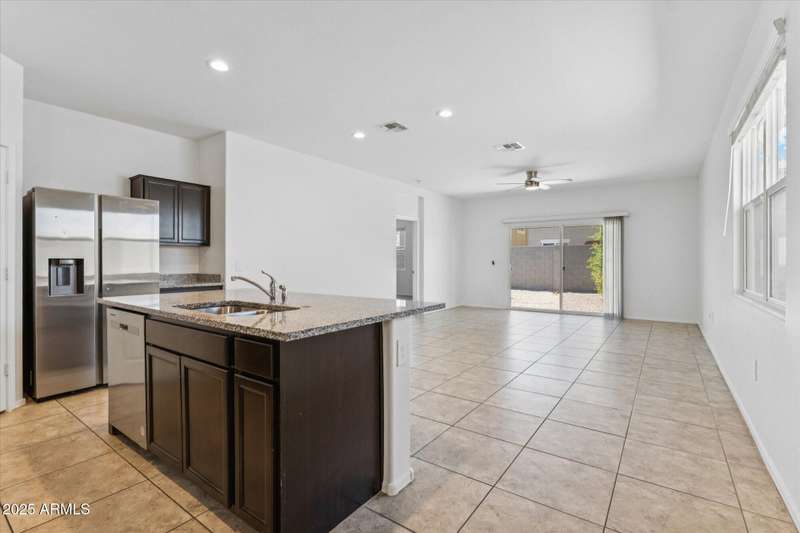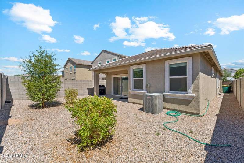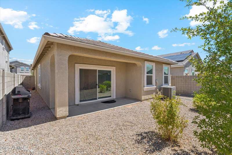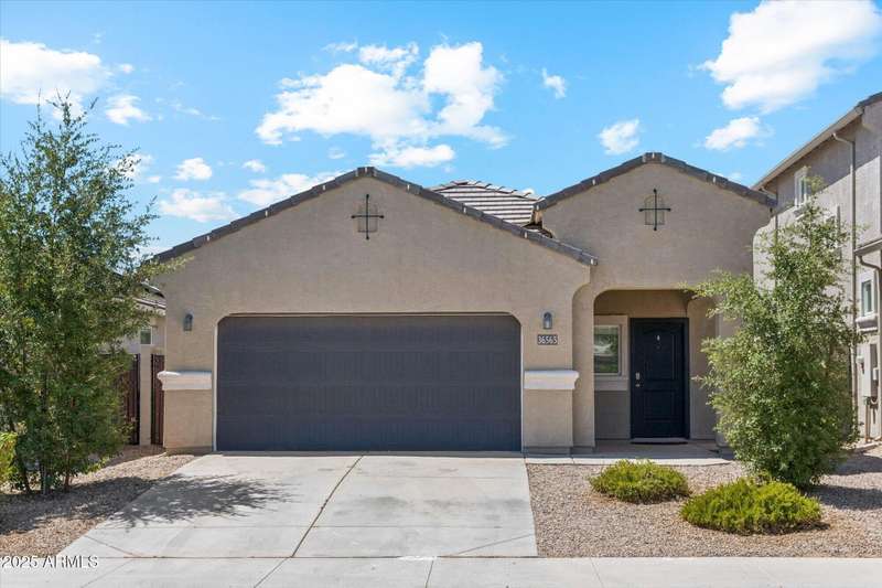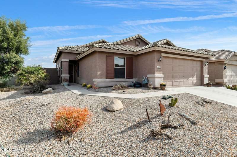 Welcome to this beautifully maintained newer construction located in the thriving City of Maricopa. This inviting 3 bedroom, 2 bathroom property features a split floorplan that offers both privacy and functionality, ideal for families or guests. Step inside to a fresh, clean look— the interior has been repainted, making it completely move-in ready. The open-concept living area flows into an eat-in kitchen equipped with all the essentials, and yes — the washer, dryer, and fridge are included! Both bathrooms feature dual vanities, offering convenience and extra space. Enjoy the added benefit of a 2 car garage, perfect for storage and parking. This is a great opportunity to own an exceptional home in a desirable location.