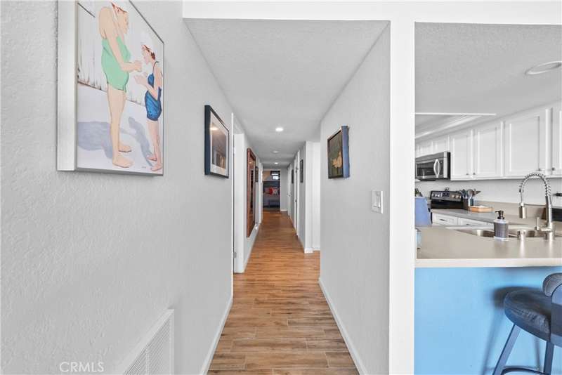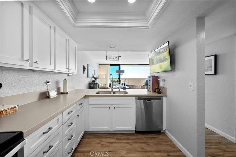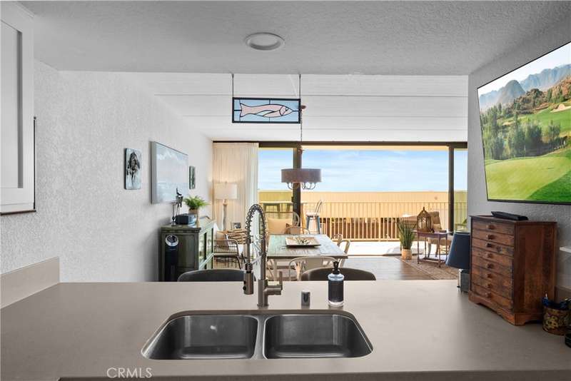 The kitchen shines with updated countertops, crisp interior paint, and modern closet doors in a clean gray, white, and blue palette that echoes the sea just outside. A full-width deck makes dining indoors or out equally inviting, while abundant storage is found throughout--four hallway closets, a full wall of storage in the primary suite, and generous kitchen cabinetry.