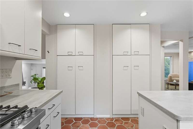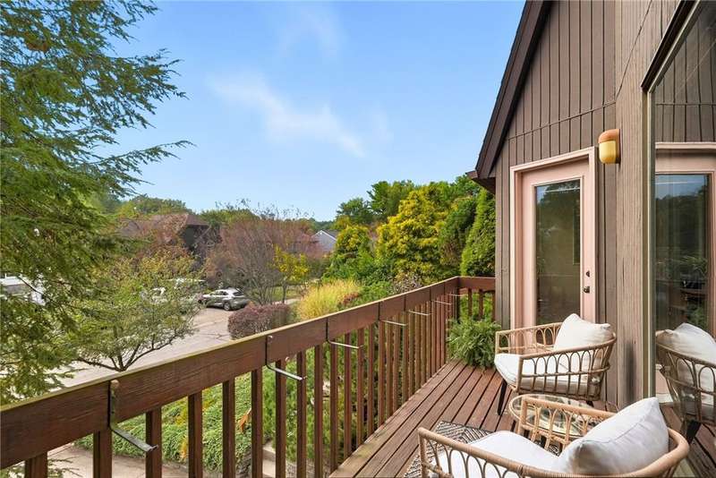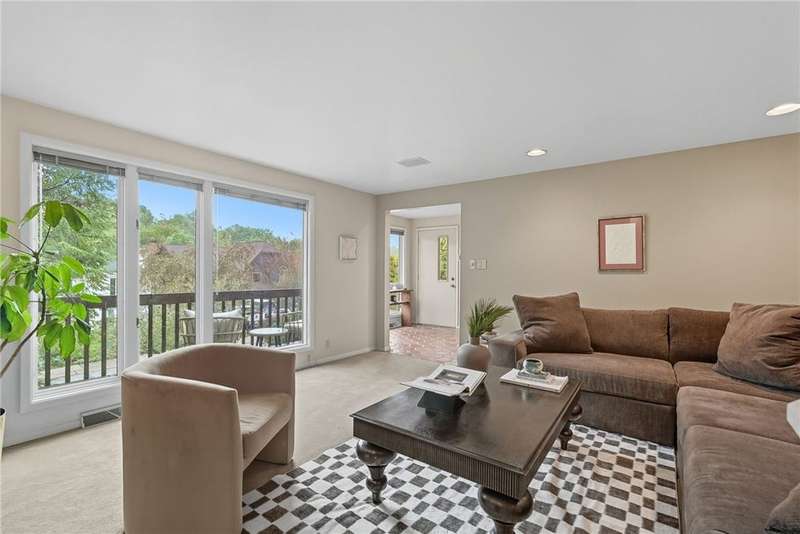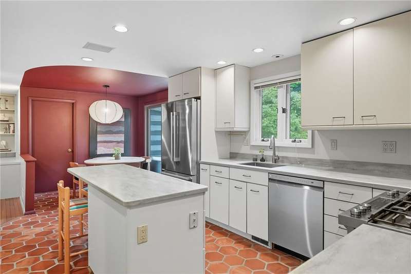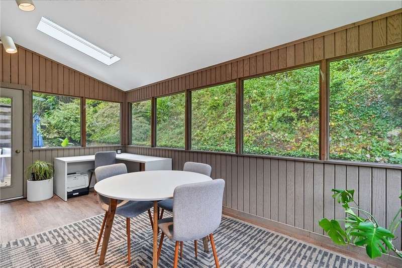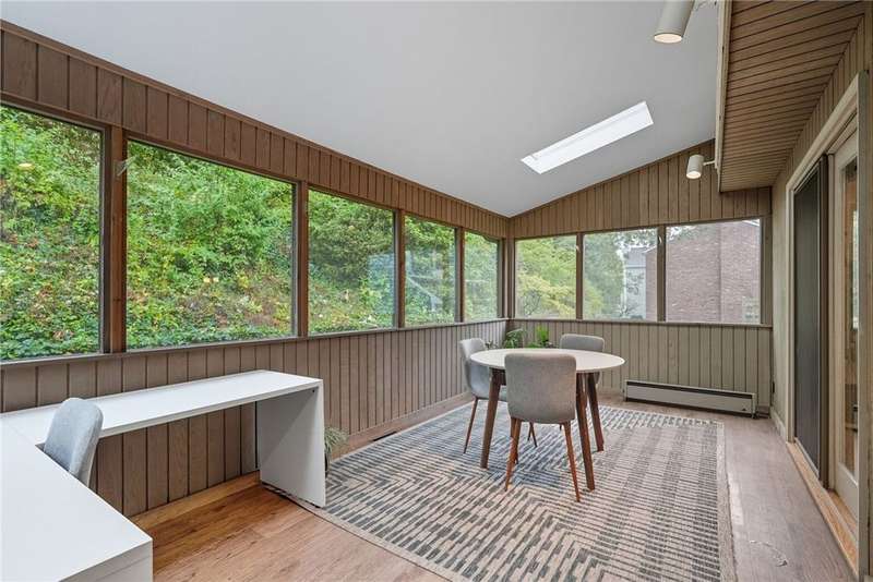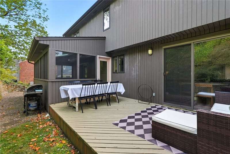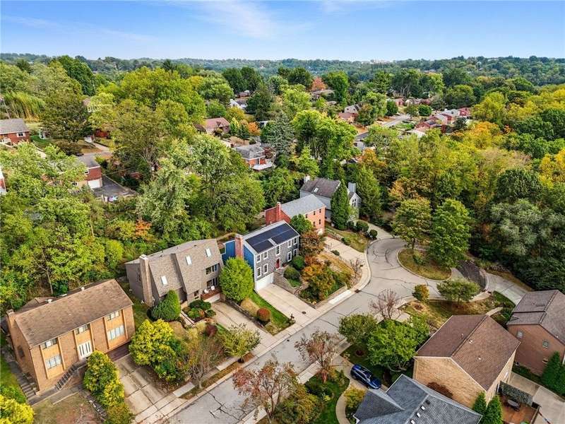 Tucked on a quiet Mt. Lebanon cul-de-sac near Robb Hollow Park, this 4-bed, 3.5-bath split-level blends character with smart updates. A bright foyer leads to a sunlit living room with oversized windows and a front deck. Just above, the dining room opens to a spacious three-season room?ideal for fall evenings. The updated eat-in kitchen features a large island, Saltillo tile, stainless appliances, and ample storage, flowing into a cozy den with hardwood floors, a wood-burning fireplace, and beautiful built-ins. A main-level powder room adds convenience. Upstairs are three bedrooms, a hall bath, and a large primary suite with walk-in closet and ensuite. The finished lower level offers flex space for an office, gym, or media room. Enjoy a private back deck, side lawn, and a 2-car integral garage with extra storage.