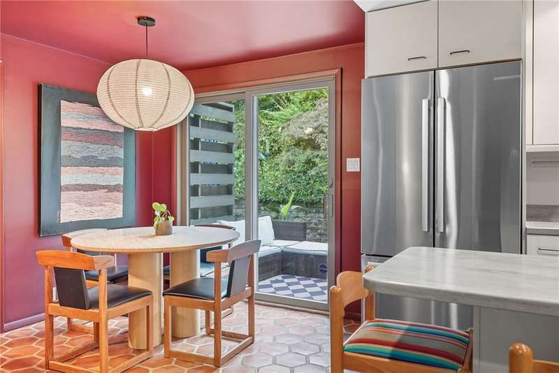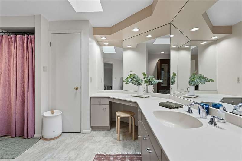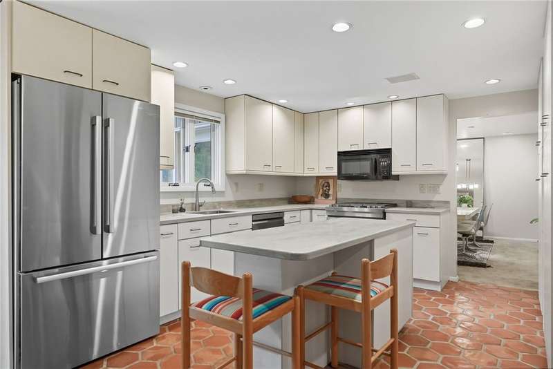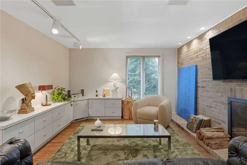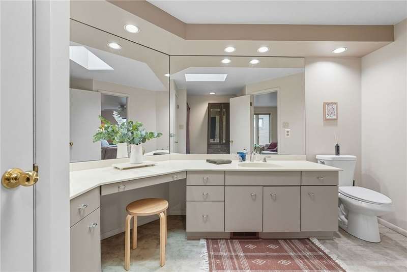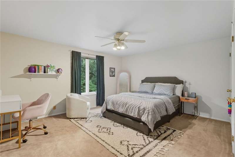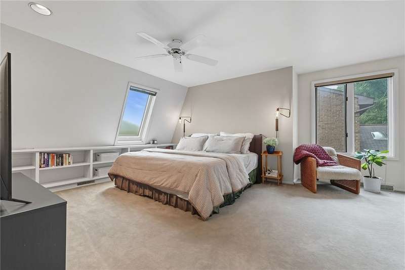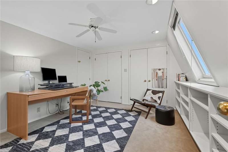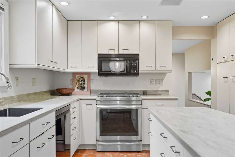 Tucked on a quiet Mt. Lebanon cul-de-sac near Robb Hollow Park, this 4-bed, 3.5-bath split-level blends character with smart updates. A bright foyer leads to a sunlit living room with oversized windows and a front deck. Just above, the dining room opens to a spacious three-season room?ideal for fall evenings. The updated eat-in kitchen features a large island, Saltillo tile, stainless appliances, and ample storage, flowing into a cozy den with hardwood floors, a wood-burning fireplace, and beautiful built-ins. A main-level powder room adds convenience. Upstairs are three bedrooms, a hall bath, and a large primary suite with walk-in closet and ensuite. The finished lower level offers flex space for an office, gym, or media room. Enjoy a private back deck, side lawn, and a 2-car integral garage with extra storage.