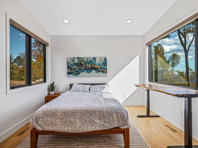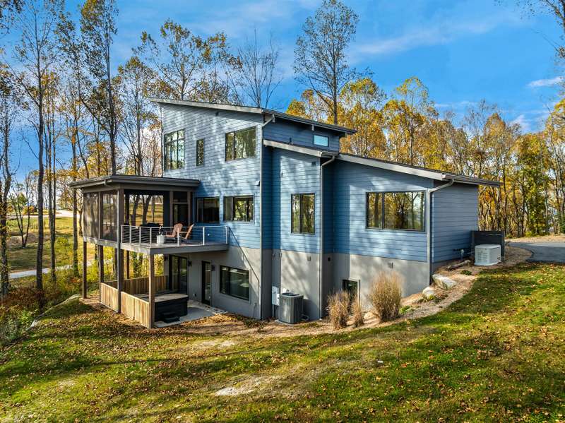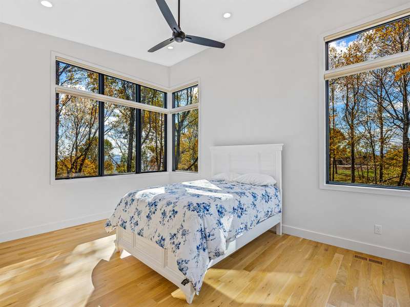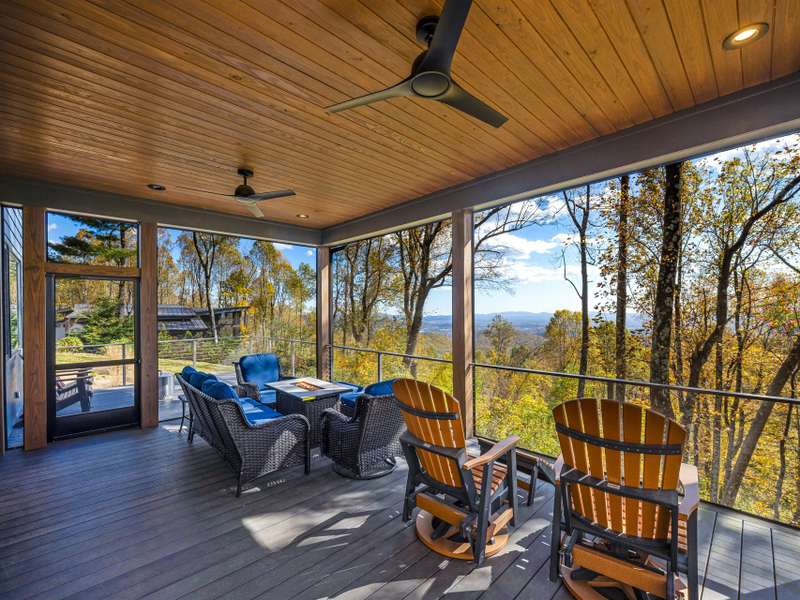 Experience living like no other on Couch Mountain. Sitting atop the mountain, enjoy year round - long range views to the north and the south for an unparalleled lifestyle. This modern masterpiece boasts views from every level through the many large windows providing lots of light from the top to bottom. Main level living is easy with plenty of space for family and friends, both upstairs and in the finished terrace level. Ask to see our feature guide to read all about the many finer feature of this masterfully built home. With community allowed 7 day rentals, this home is perfect for a lock and leave lifestyle with opportunities for income when not in use. The neighborhood is welcome and inviting with hiking trials, community gardens, and friendly folks who meet up regularly for activities within this secure gated community. Convenient to shopping and dining in Hendersonville, Mills River, and South Asheville. Convenient to AVL airport too!