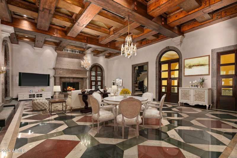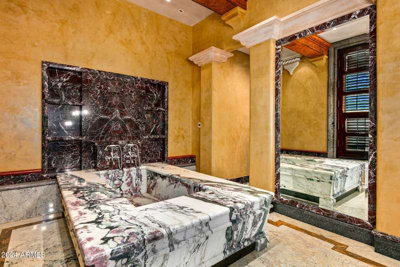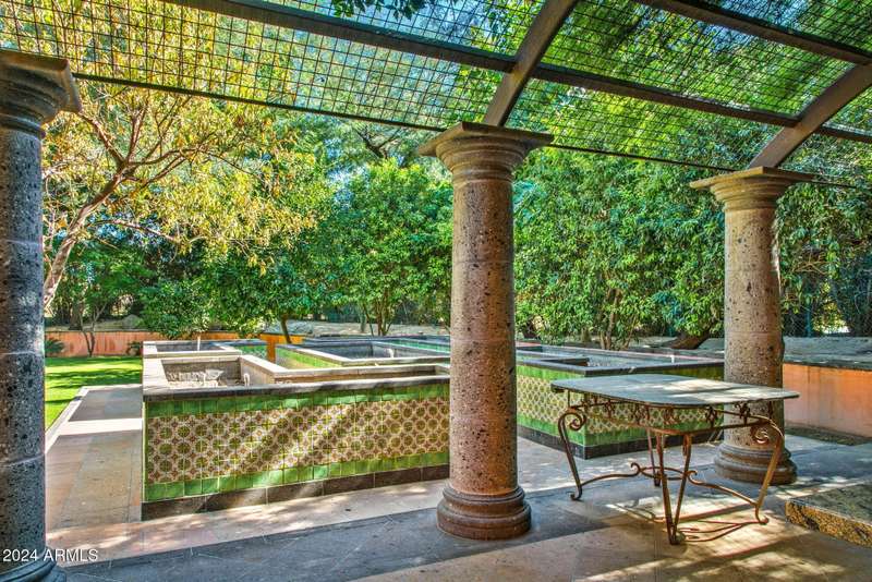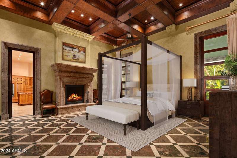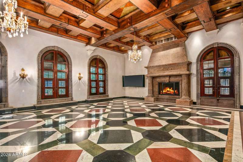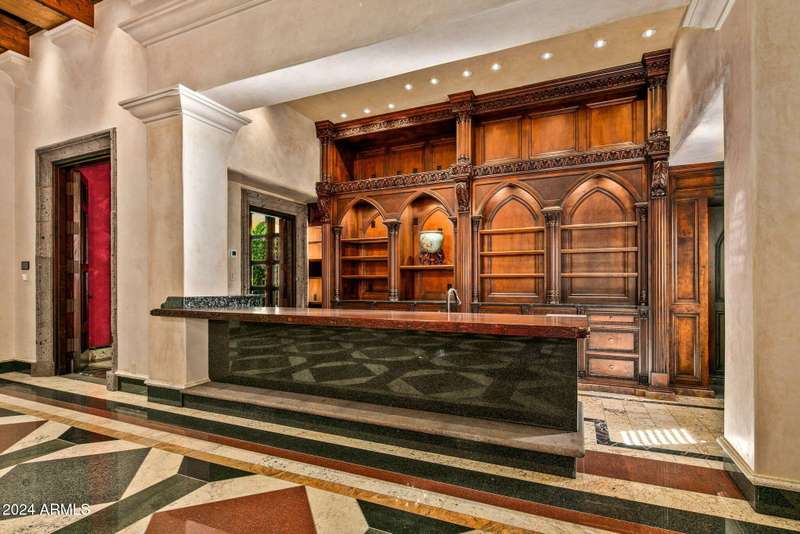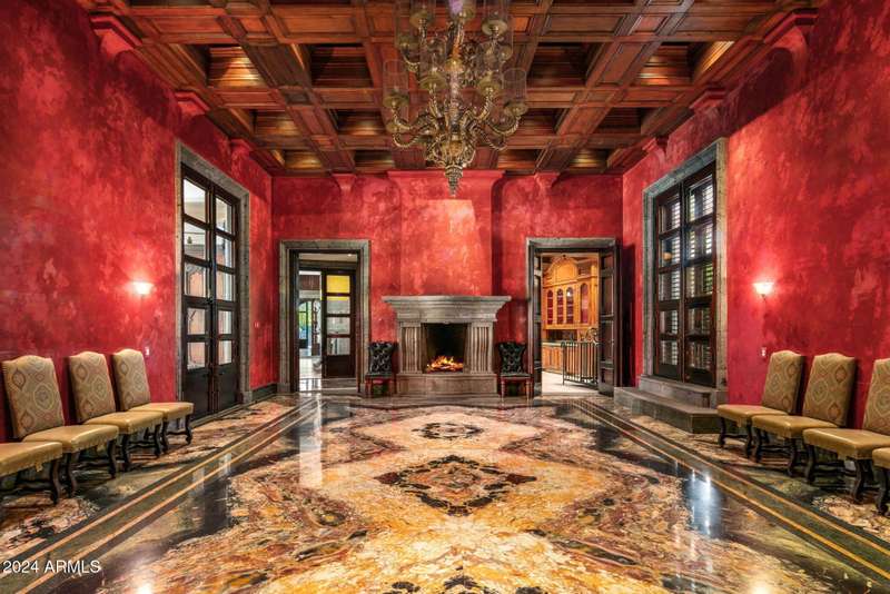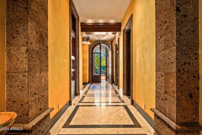 Transport yourself to a bygone era of grandeur with this luxurious 17,912 SF estate, set in the heart of Paradise Valley. Designed by world-renowned architect Juan Sandoval, this architectural masterpiece spans 3 acres, featuring 5 opulent bedroom suites and 11 baths, each designed as a private retreat, featuring fireproof walls, wet bars, and exquisite finishes. Upon entering the estate, the attention to detail is immediately apparent with a custom 13' Honduran Mahogany entry door, flanked by lush courtyards adorned with fountains and over 600 rose bushes. The estate's central courtyards lead to a stunning 60'x60' mosaic-tiled saltwater pool and spa, offering a serene focal point for outdoor living. This residence combines Old World elegance with modern conveniences, all within ... a secured 45,000 SF perimeter. Inside, the residence is a showcase of artisanal mastery. Venetian plaster, marble, and granite adorn every surface, while custom wood coffered ceilings and ironwork, created on-site, add layers of bespoke detail. The kitchen is a chef's dream with top-of-the-line appliances, including four Sub-Zero refrigerators, five KitchenAid dishwashers, and a 60" Wolf gas cooktop. Beyond, the estate features expansive living and entertaining spaces, including a 10,000-square-foot arcade, a game room with a walk-in bar, and an unfinished basement ready to accommodate whatever your heart desires. The estate is also equipped with cutting-edge technology, including Lutron home automation, hidden HVAC vents, and custom cabinetry throughout. The attention to detail extends to the smallest touches, such as stone kick plates under every cabinet and handcrafted Canterra stone accents. This is more than a homeit's a living work of art perfected by artisans over a 9-year period, blending historic design with modern luxury and security, offering an unparalleled lifestyle for those who appreciate the finest things in life. This could be your own private Royal Palms and it must be seen and experienced to be believed!