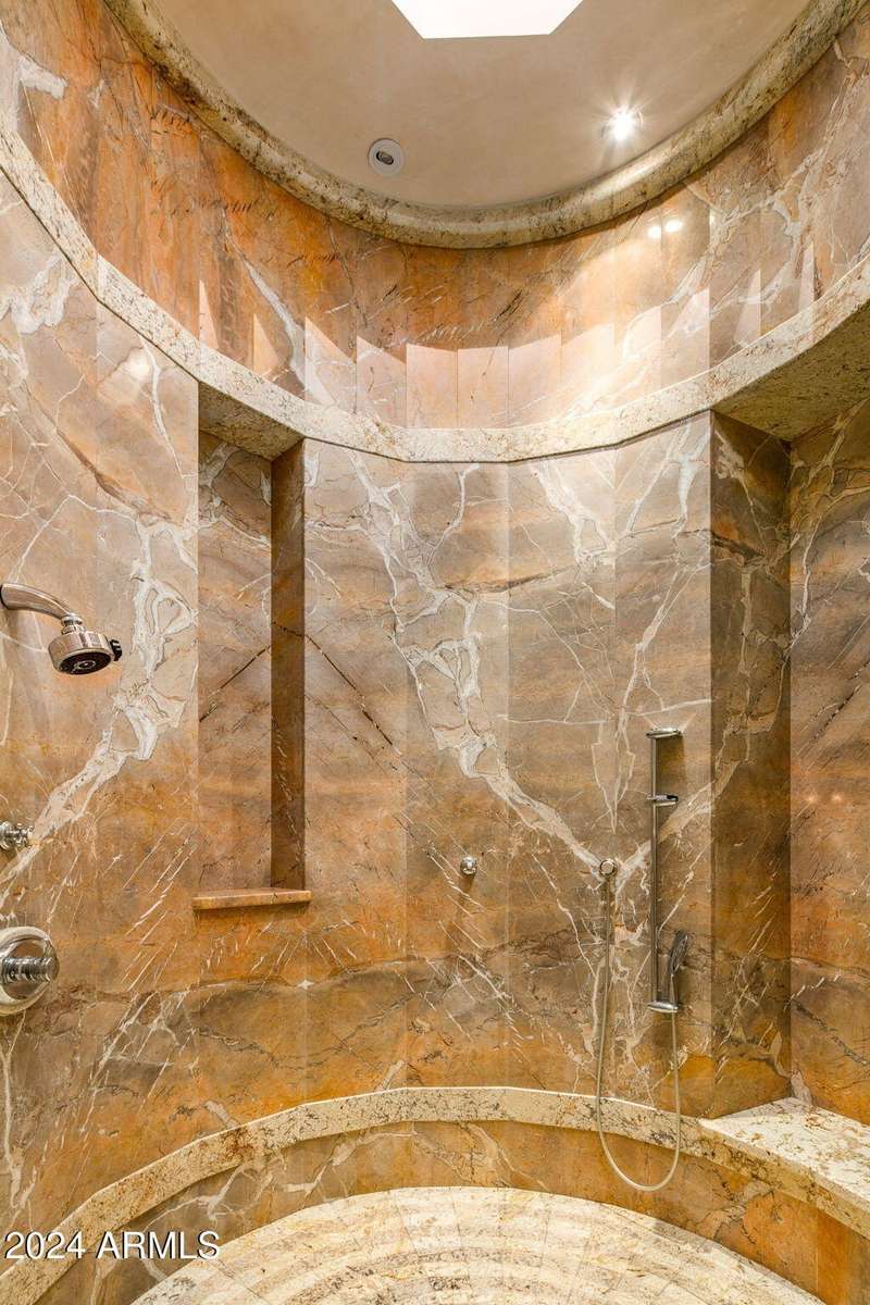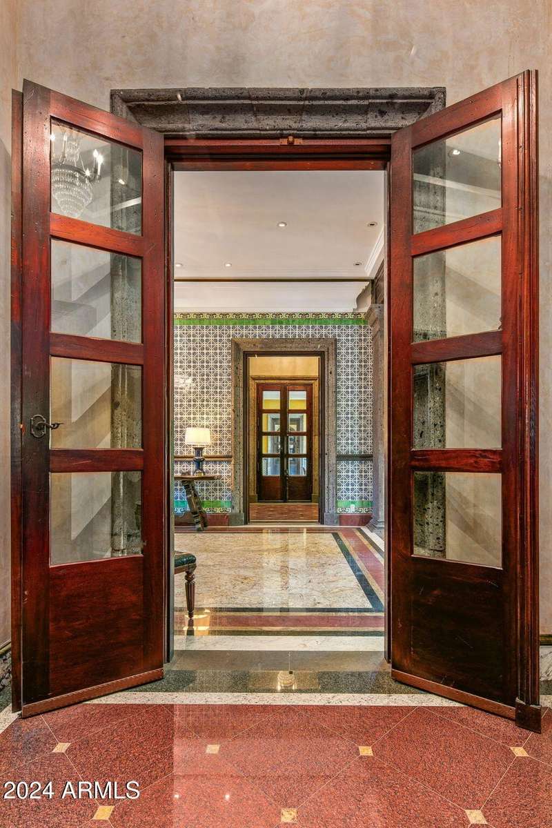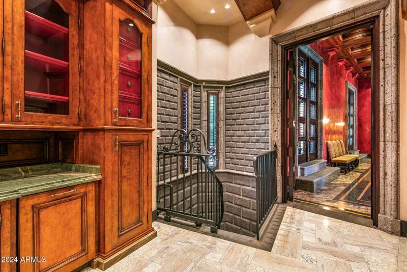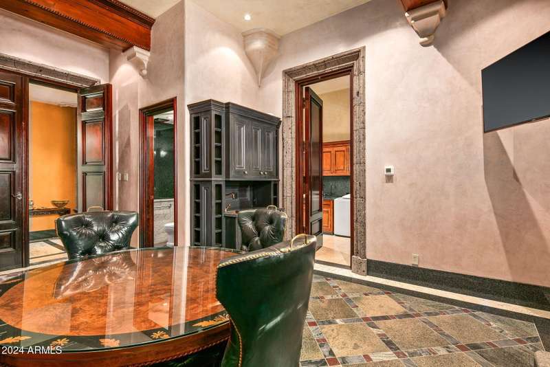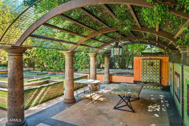 Transport yourself to a bygone era of grandeur with this luxurious 17,912 SF estate, set in the heart of Paradise Valley. Designed by world-renowned architect Juan Sandoval, this architectural masterpiece spans 3 acres, featuring 5 opulent bedroom suites and 11 baths, each designed as a private retreat, featuring fireproof walls, wet bars, and exquisite finishes. Upon entering the estate, the attention to detail is immediately apparent with a custom 13' Honduran Mahogany entry door, flanked by lush courtyards adorned with fountains and over 600 rose bushes. The estate's central courtyards lead to a stunning 60'x60' mosaic-tiled saltwater pool and spa, offering a serene focal point for outdoor living. This residence combines Old World elegance with modern conveniences, all within ... a secured 45,000 SF perimeter. Inside, the residence is a showcase of artisanal mastery. Venetian plaster, marble, and granite adorn every surface, while custom wood coffered ceilings and ironwork, created on-site, add layers of bespoke detail. The kitchen is a chef's dream with top-of-the-line appliances, including four Sub-Zero refrigerators, five KitchenAid dishwashers, and a 60" Wolf gas cooktop. Beyond, the estate features expansive living and entertaining spaces, including a 10,000-square-foot arcade, a game room with a walk-in bar, and an unfinished basement ready to accommodate whatever your heart desires. The estate is also equipped with cutting-edge technology, including Lutron home automation, hidden HVAC vents, and custom cabinetry throughout. The attention to detail extends to the smallest touches, such as stone kick plates under every cabinet and handcrafted Canterra stone accents. This is more than a homeit's a living work of art perfected by artisans over a 9-year period, blending historic design with modern luxury and security, offering an unparalleled lifestyle for those who appreciate the finest things in life. This could be your own private Royal Palms and it must be seen and experienced to be believed!