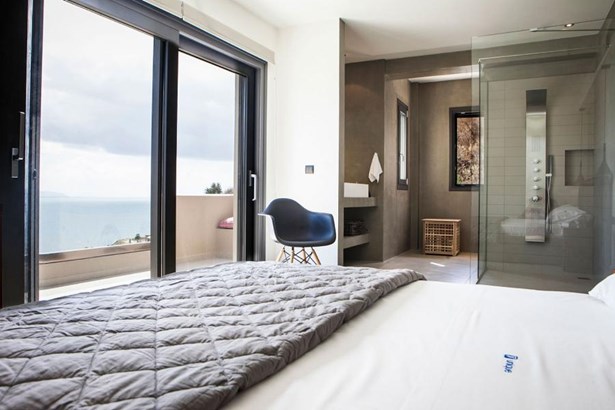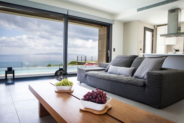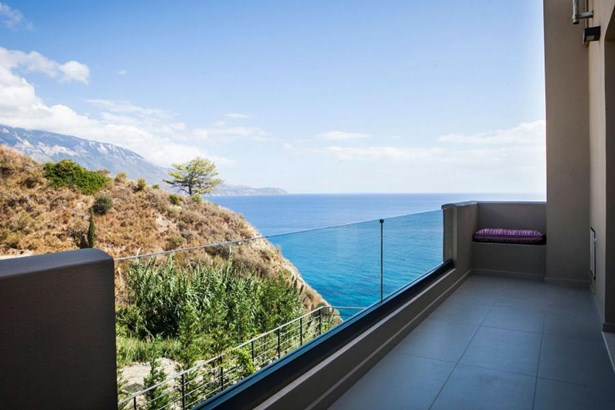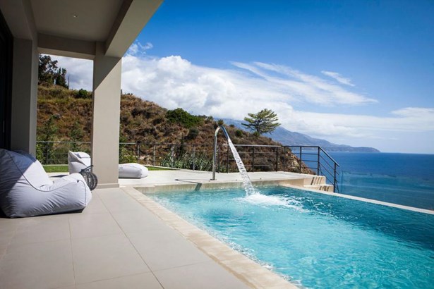 Stylishly minimalist, this remarkable property offers the most panoramic views across the sun-dappled azure waters of the Ionian Sea to Zakynthos.
