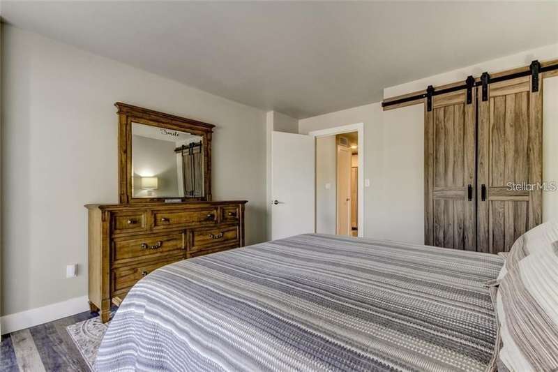 CONVENIENT FIRST FLOOR UNIT!! (Furnished) This nicely updated one bedroom one bathroom condominium has a beautiful modern design with all of the finest touches, to include, luxury vinyl plank flooring, barn doors, high-end GE appliances and a fire proof front door, this property is a must see! This unit has an open floor-plan, oversized balcony and is located within one of the most desirable, waterfront buildings in Island Estates. While spending time outdoors some of the amenities that can be enjoyed include: A marina, oversized heated pool and spa, tiki tables, tiki bar, his and her restroom facilities equipped with showers and sauna, shuffleboard court, tennis court and BBQ area. This property is also a short walk to the #1 beach in the US, the world famous Clearwater Aquarium, the best restaurants, banks, shopping, medical facilities and all that Clearwater Beach has to offer. (This requires a minimum of a 12 month lease) Call today for more information and a private showing! AVAILABLE IN MAY, 2025.