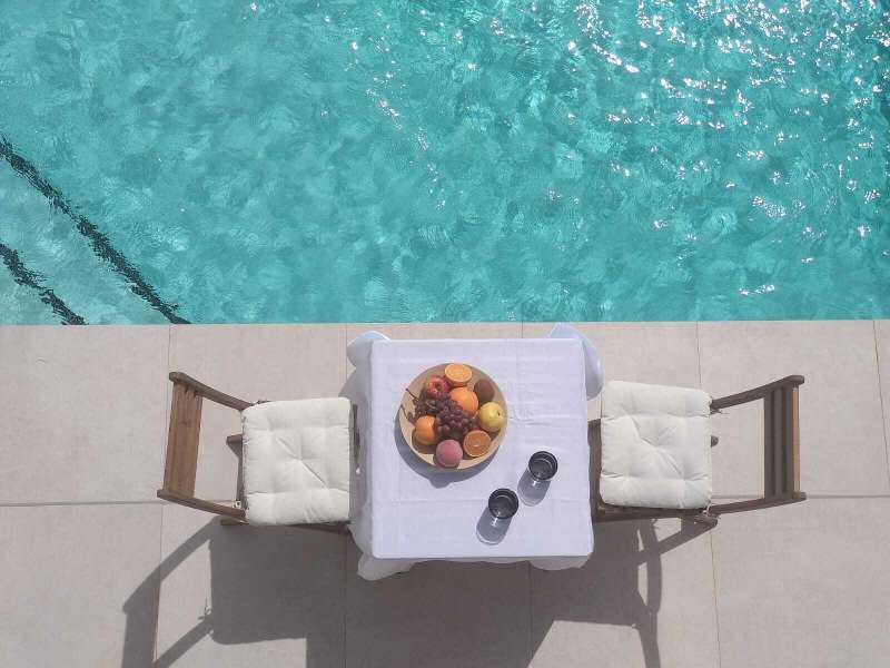 The villas boast an open-plan layout with floor-to-ceiling windows that bring in abundant natural light. The modern kitchen, complete with a breakfast bar, flows seamlessly into the living and dining area, opening onto the terrace and pool. The master bedroom enjoys direct access to a private terrace and an en-suite bathroom. Each home also features a spacious solarium with panoramic sea views, perfect for relaxing or entertaining.